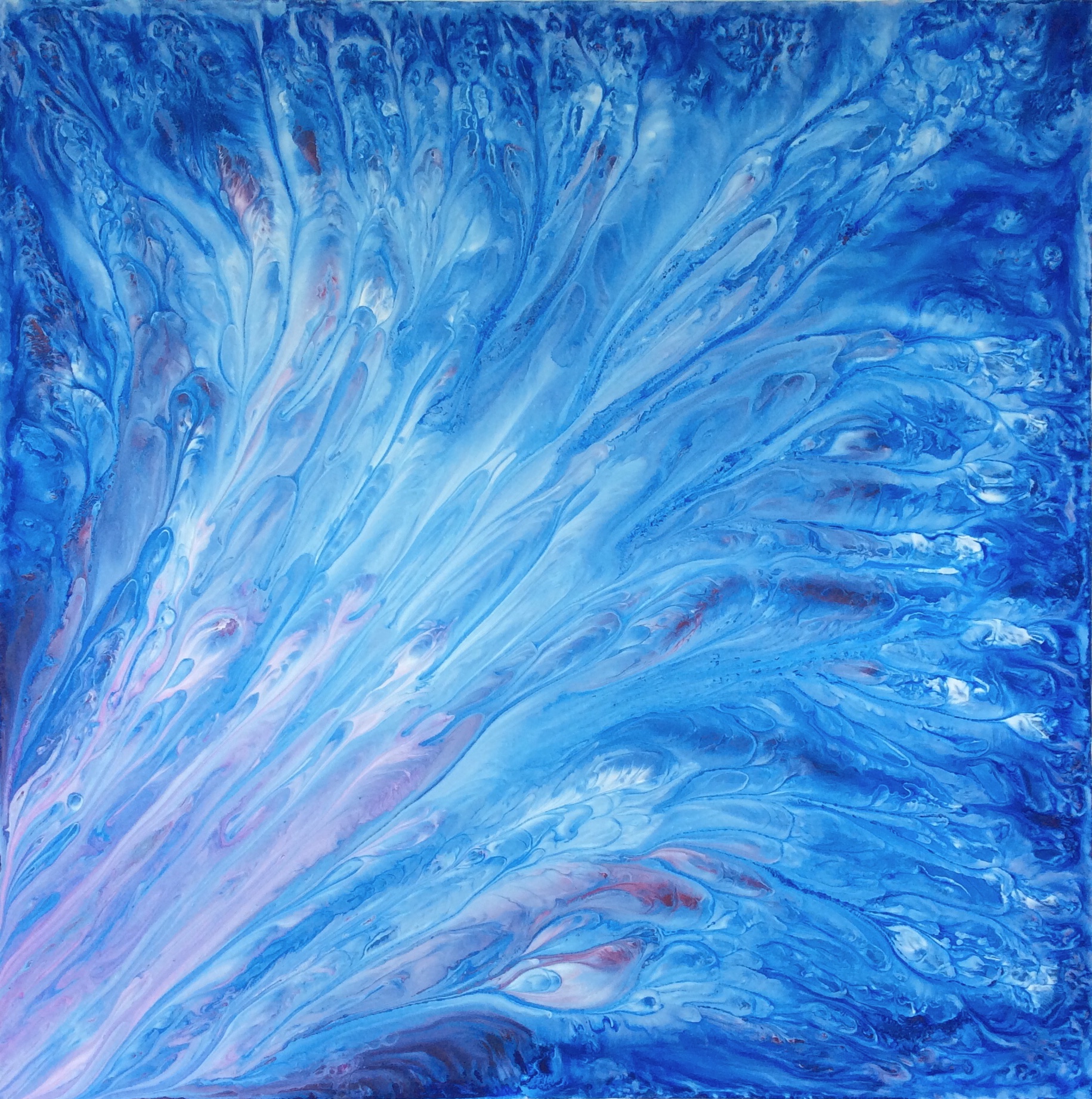 Water Burst | 102 x 102cm, Acrylic paints poured over stretched canvas