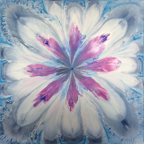 Blue Petals | 102 x 102cm, Acrylic paints poured over stretched canvas