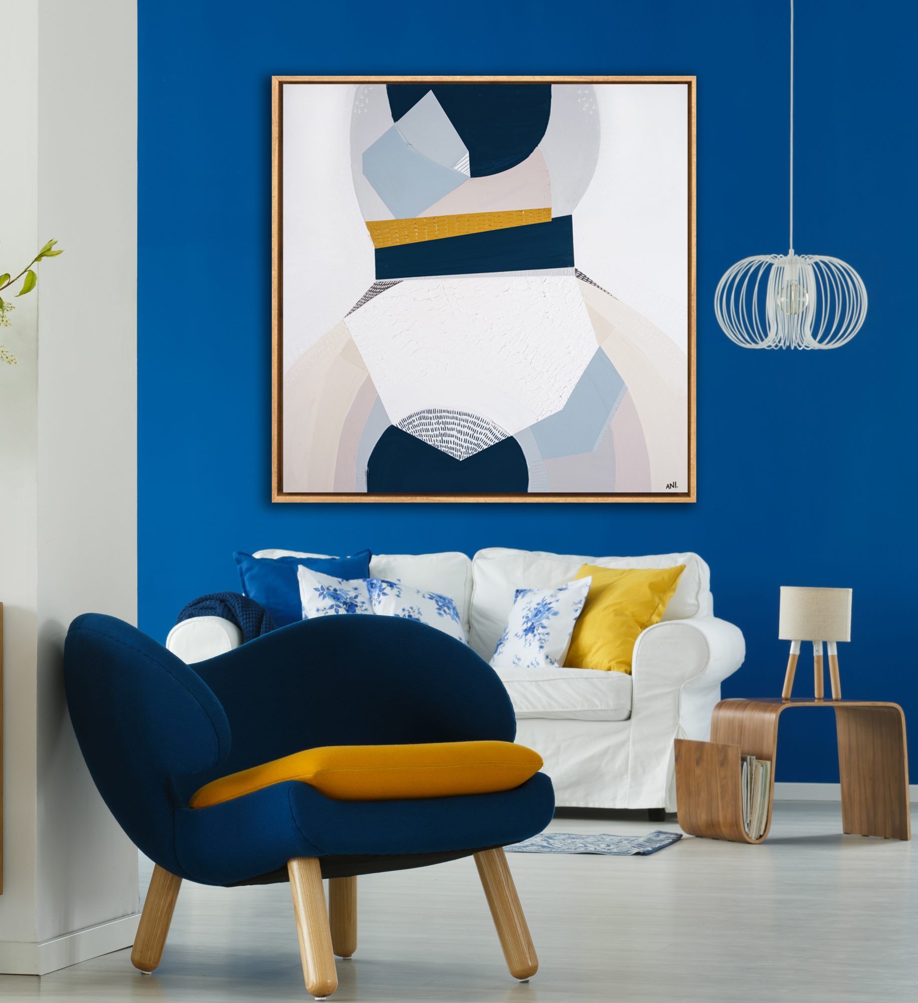 Framed in light oak