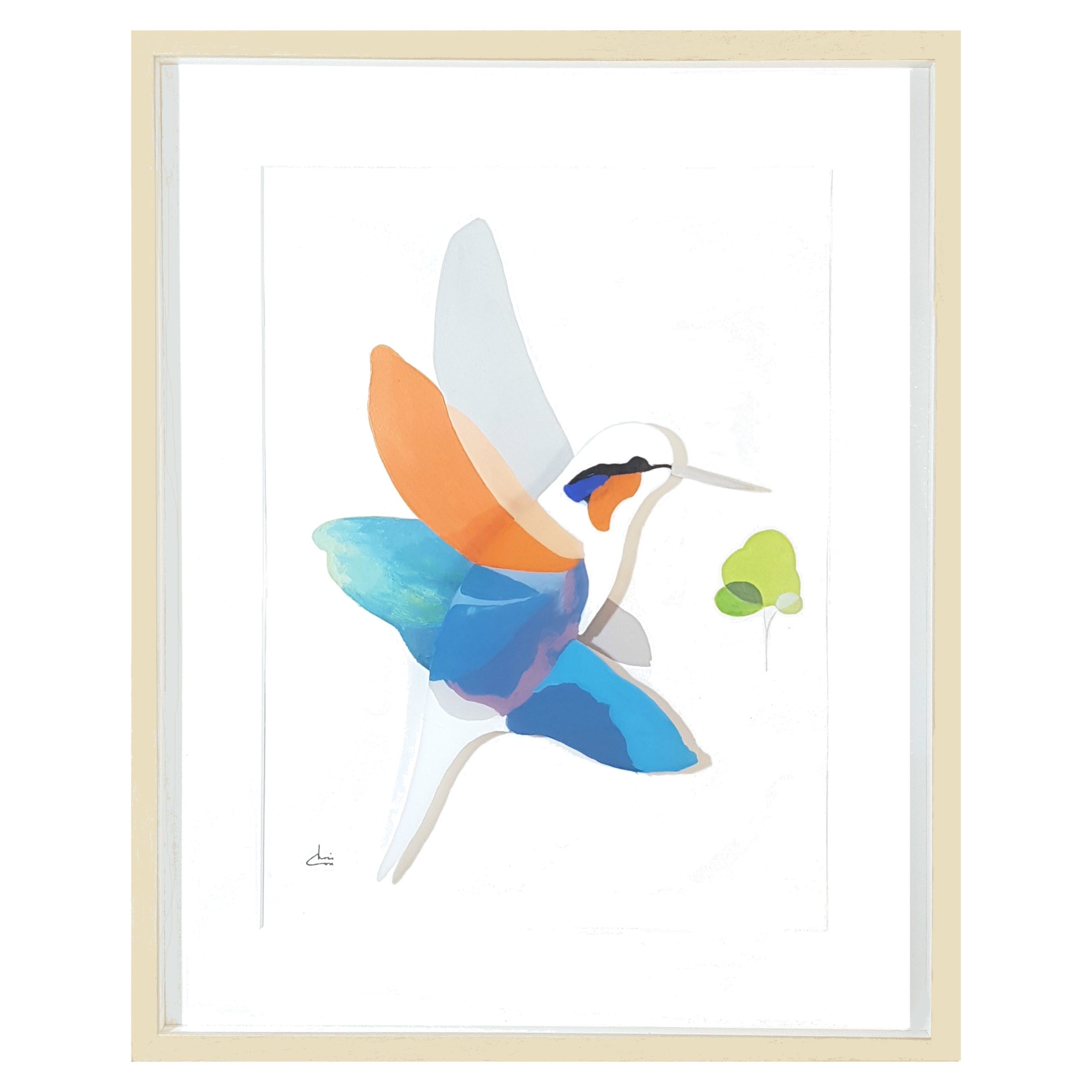 This artwork utilises 2 surfaces to create a unique three dimensional display. The frontal perspex sheet has acrylic applied to the inside of the sheet, while a spacer seperates the backdrop painted on watercolour paper. The effect is an amazing three dimensional display and perspective of the bird in flight.motion. A striking and aesthetic piece for any home interior or workspace.