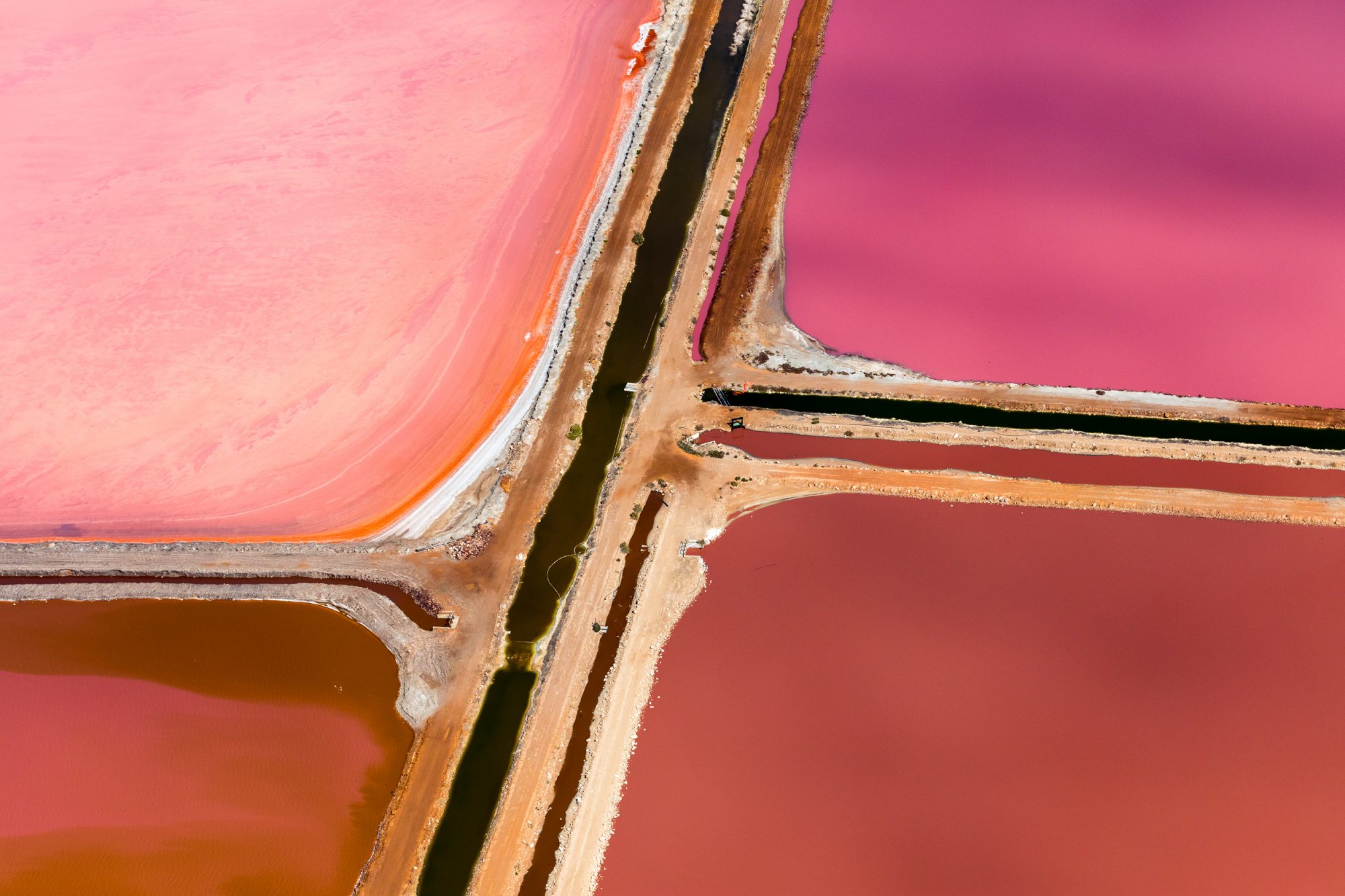 Hutt Lagoon is a salt lake in mid-north WA. The lagoon contains the world’s largest microalgae production plant, a 250-hectare (620-acre) series of artificial ponds used to farm Dunaliella salina which creates the pink and red hue in the lakes.