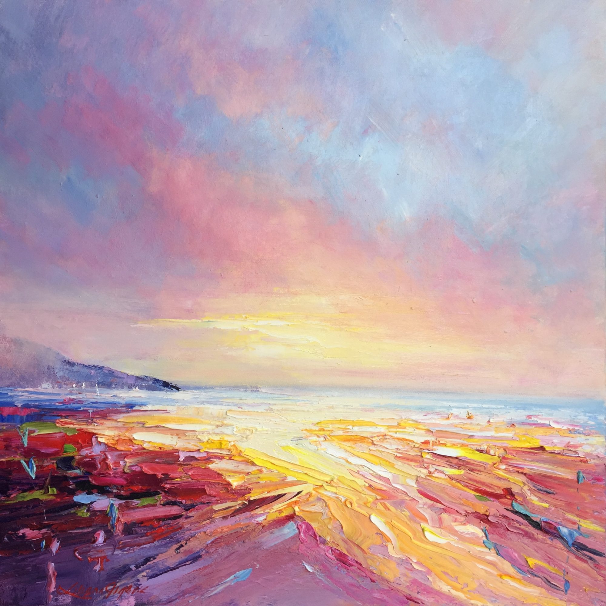 This painting is No 14 in the series of “A brand new day”. I was inspired to do this painting when i was taking photos of the sunrise at the beach in QLD.