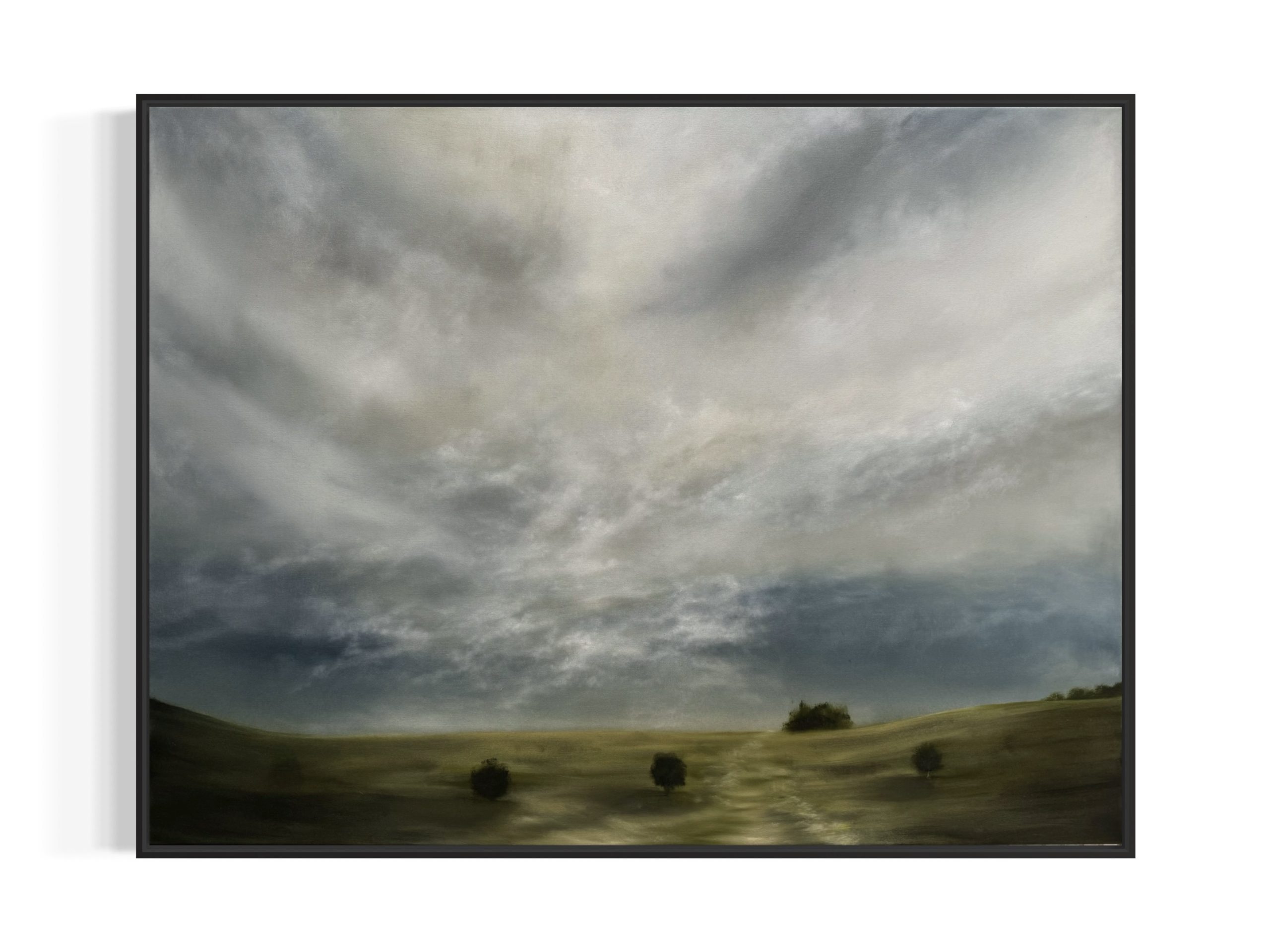 Ready to hang, original oil painting on stretched canvas with Oak floating frame.