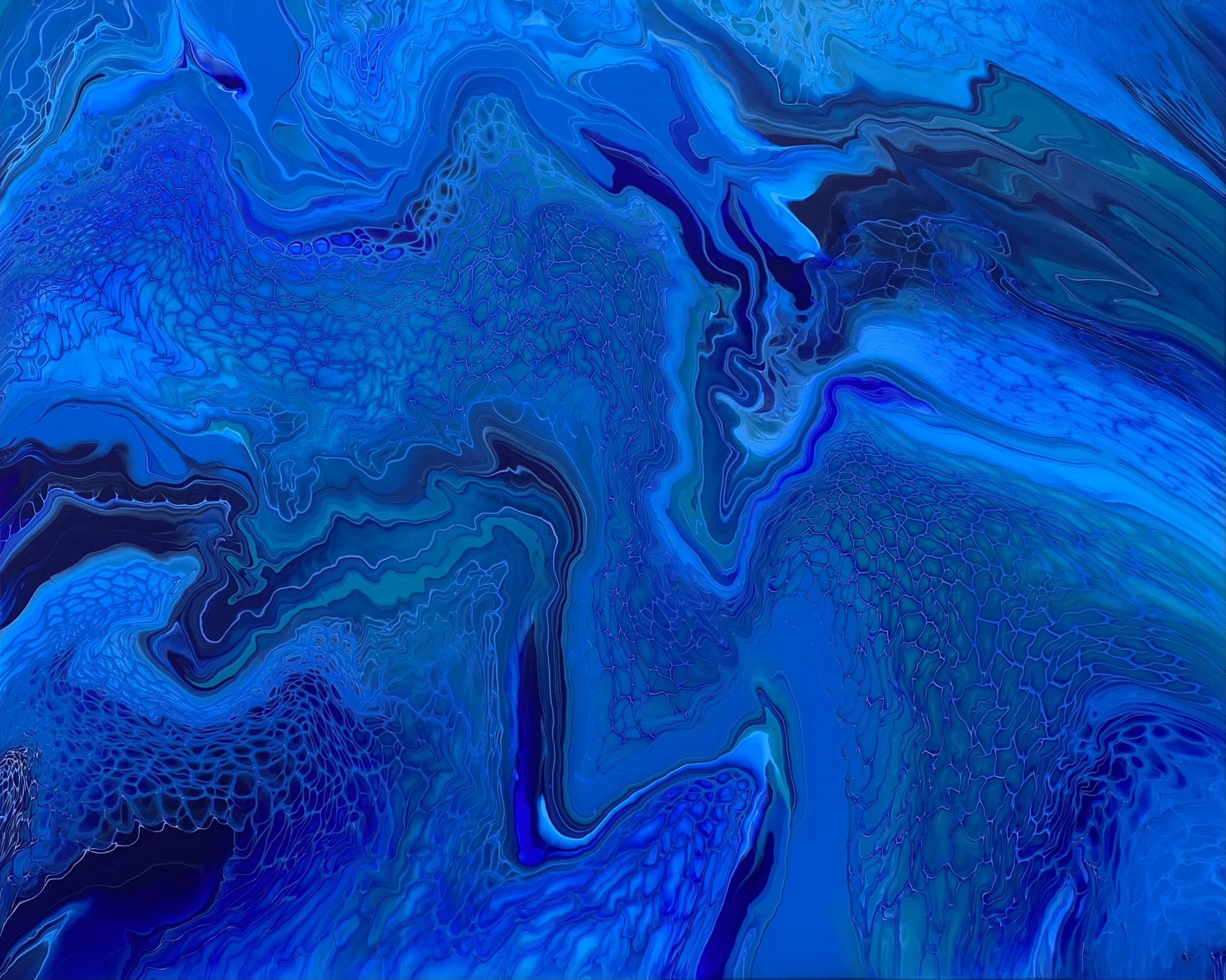 A tumultuous journey in vivid blue. This is a deeply personal, and introspective piece exploring life and living with PTSD. Its beautiful and organic, and somehow manages to combine both a calm peace and violent movement in its flow, in a stunning reflection of life after the storm.