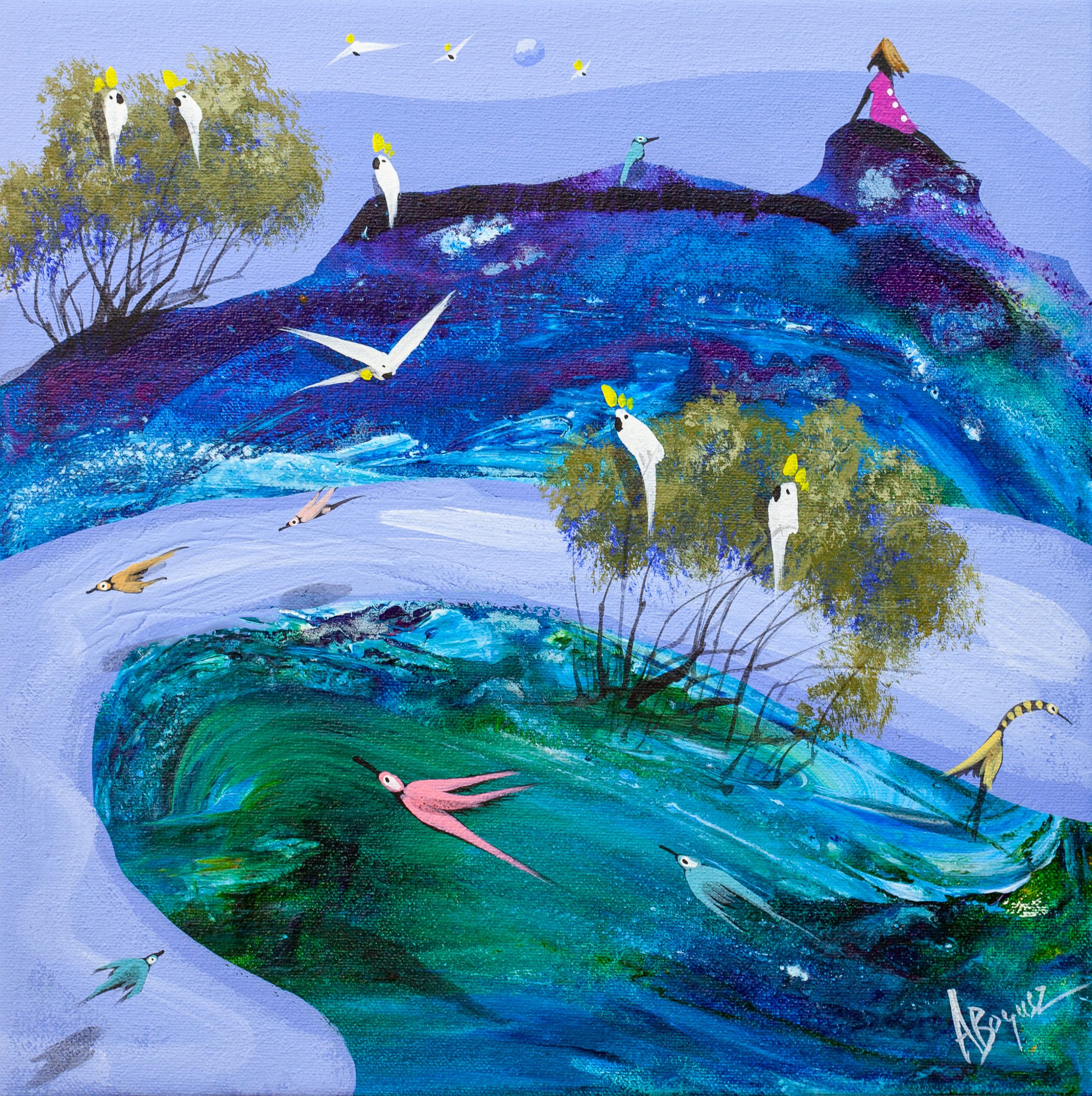 This series is a culmination of almost 25 years of painting. It draws inspiration from many sources, including my time growing up in Townsville, Nth Queensland, my father’s artwork, my wife and two children and Zen Buddhism. These images do not represent any particular place or time. I want them to have a universal appeal and ambiguity that allows viewers to write their own story into the image.