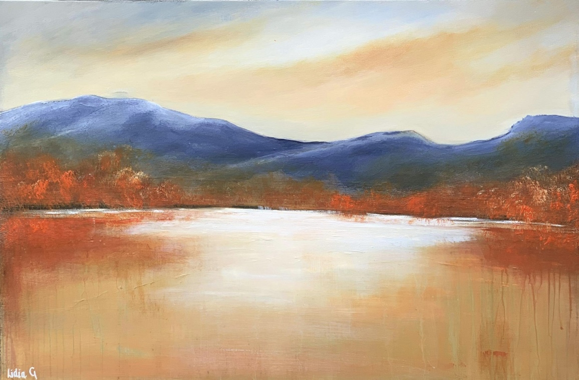 Inspired by the incredible diversity of the Australian landscape from its rugged coastlines, snow-capped mountains and the idiosyncratic landscape of the sandy desert with its sun baked monoliths and rainforests. The edges of the painting are painted in Lamp black and comes with professional wire hanger and a Certificate of Authenticity.