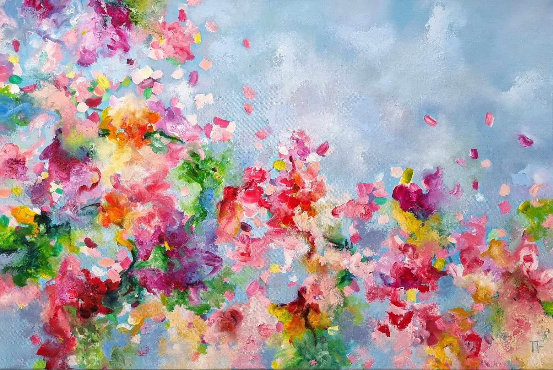 This is an abstract floral painting created in quality oil paint sure to brighten up any interior.
