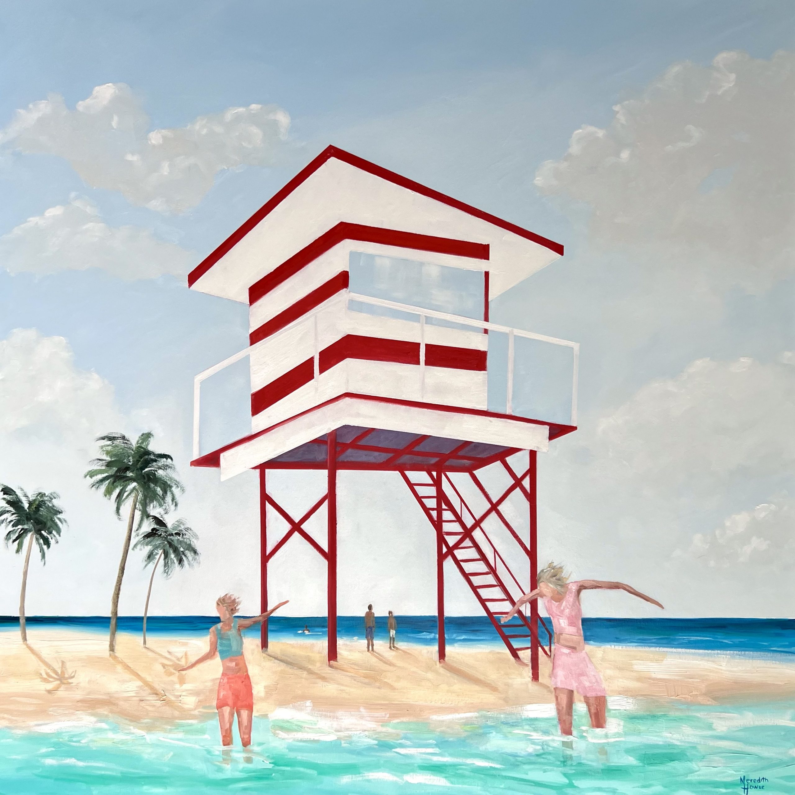 In this piece, Howse depicts two women dipping their toes in the cool, fresh water of the sea.