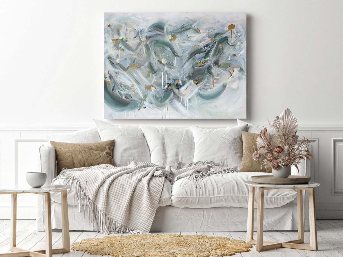 A love as deep as the ocean by Fern Siebler – is an original from my collection ‘Fragments’ completed in 2021. There are flecks of 24 karat gold leaf scattered throughout the artwork adding a beautiful depth to the piece.