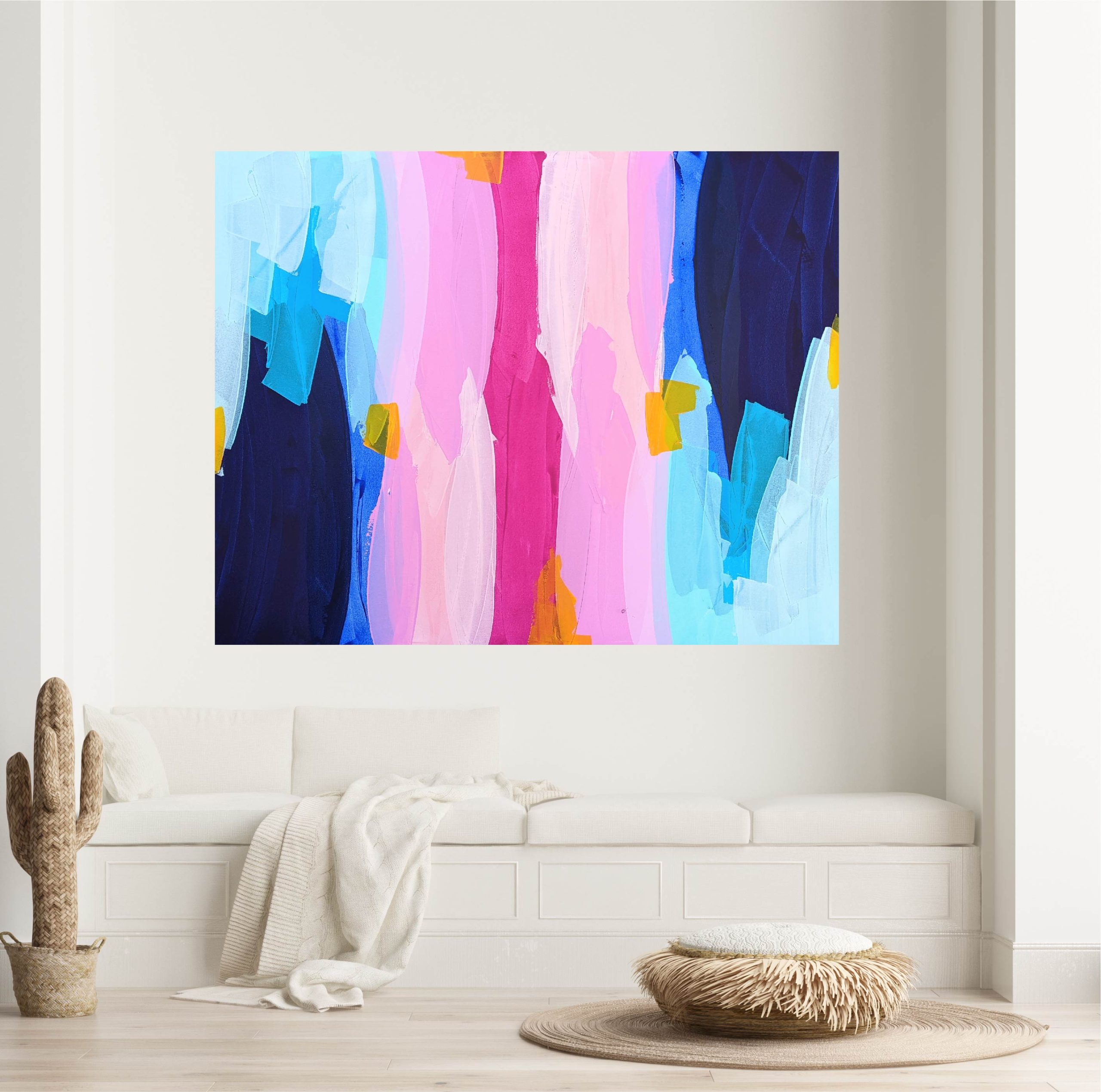 Bright abstract in my signature palette with lots of movement and energy in the strokes.