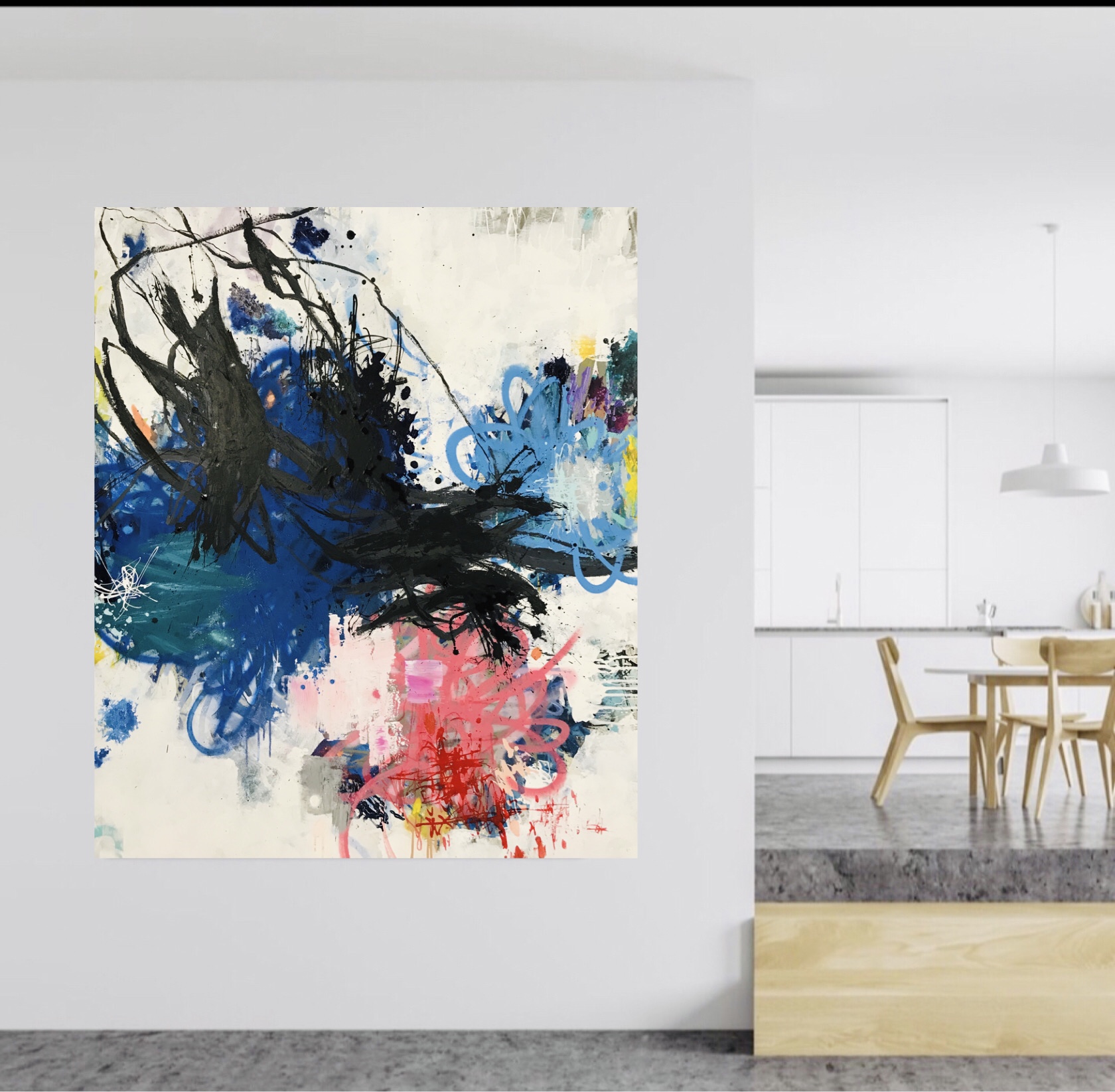 The artwork is a Large Statement piece and will give maximum impact to any room. My art is directly influenced by Graffiti in City Laneways, Vintage Billboards and other weathered surfaces. This piece is also inspired by my love of gestural abstraction and my obsession with using spray paint.