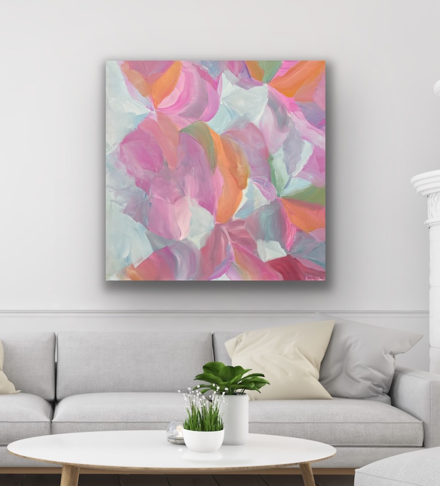 This painting is inspired by new beginnings. A calm and fresh artwork with pastel tones and depth. A lovely modern addition to your home