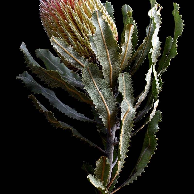 Waratah Banksias and the Viridian Leaves