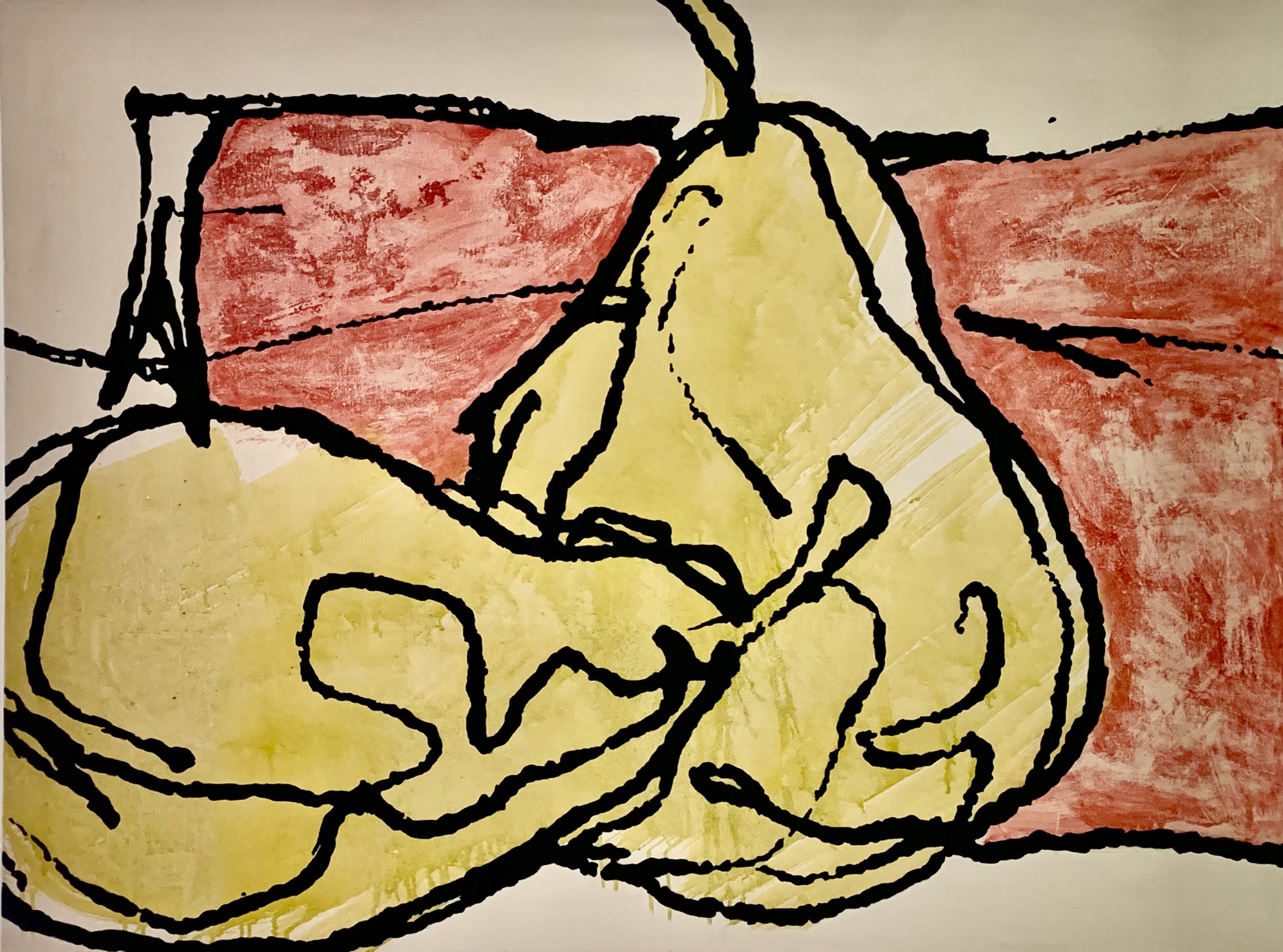 This painting is a different take on the traditional still life. I taken a simple subject like a pear and given it a new and interesting way to see it. Taken from many rough sketches and then modernizing them as a contemporary narrative.