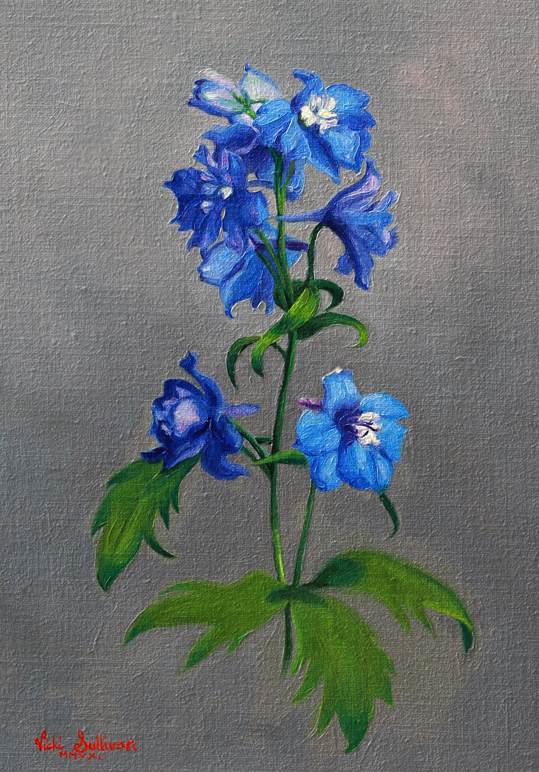 A show of Blue by Vicki Sullivan – These gorgeous blue Delphiniums were grown in my garden and I love to paint them,