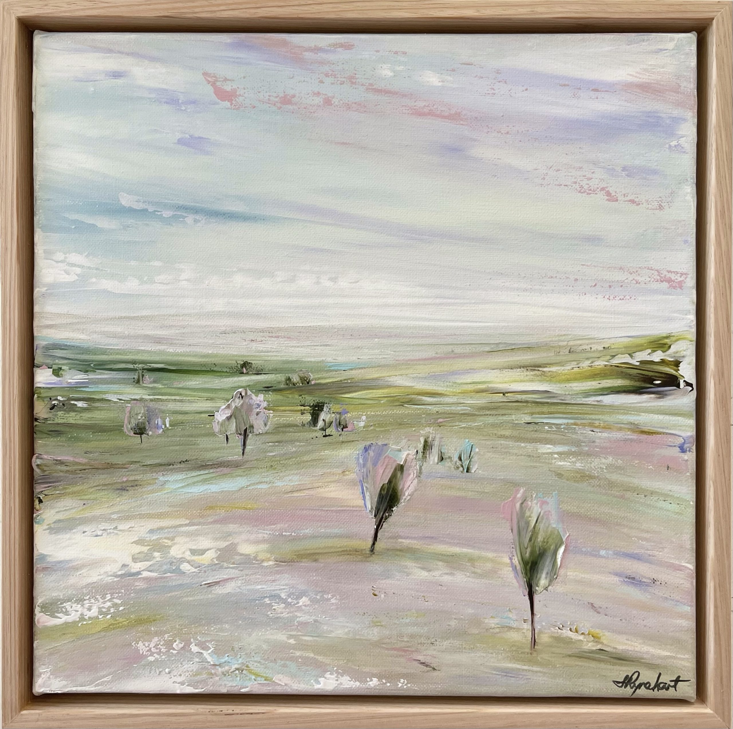 Created with palette knives on beautiful Belgian linen, this landscape is framed in solid tas oak, satin varnished, and comes with a COA.