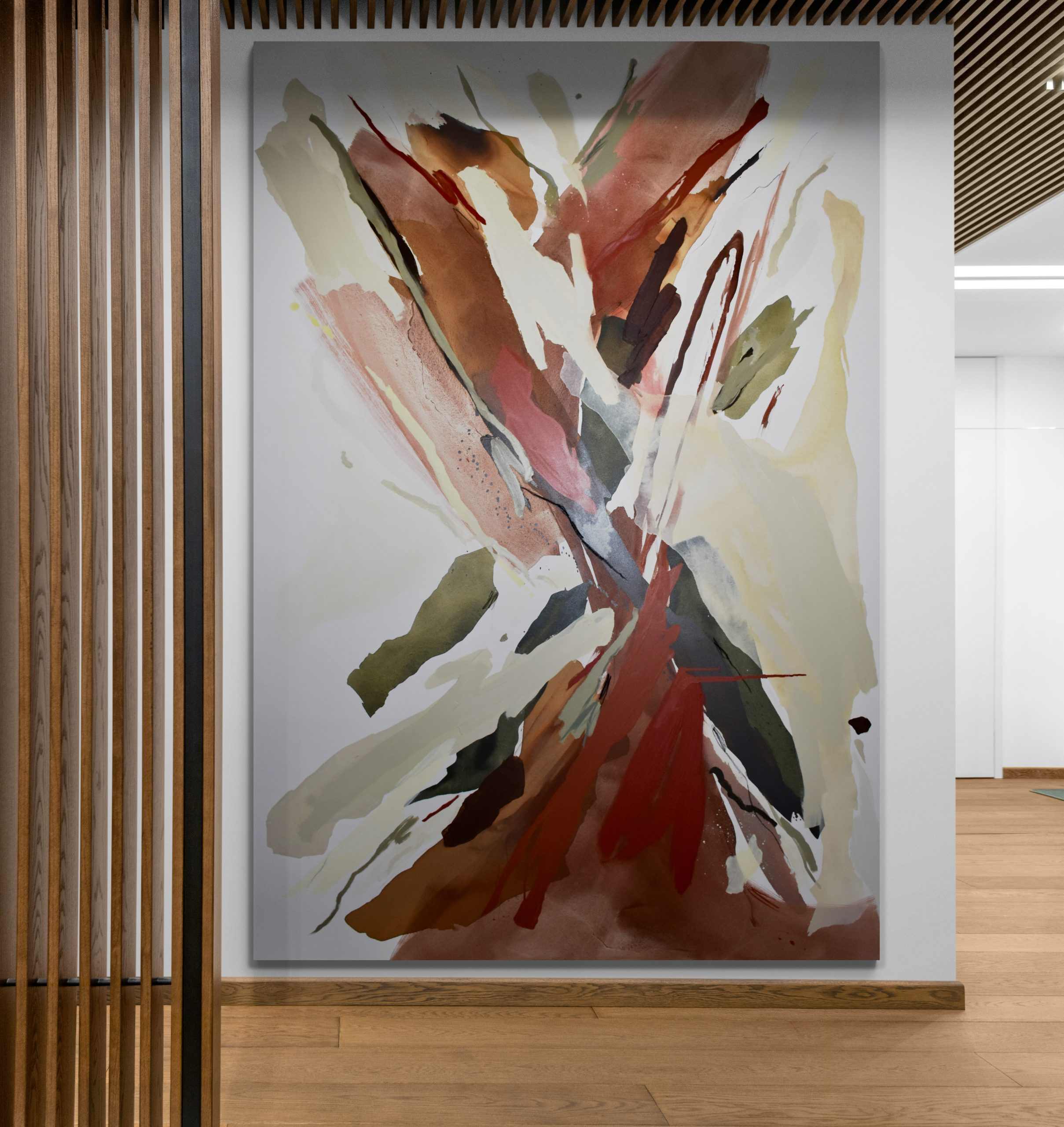 This is a unique and original piece. Artwork was created using high quality oils and acrylic, oil pastels, alternating tools, spatula and brush and combining mediums to create multiple textures and layers. Signed with certificate of authenticity. Ready to hang with wires set for both Portrait and Landscape.