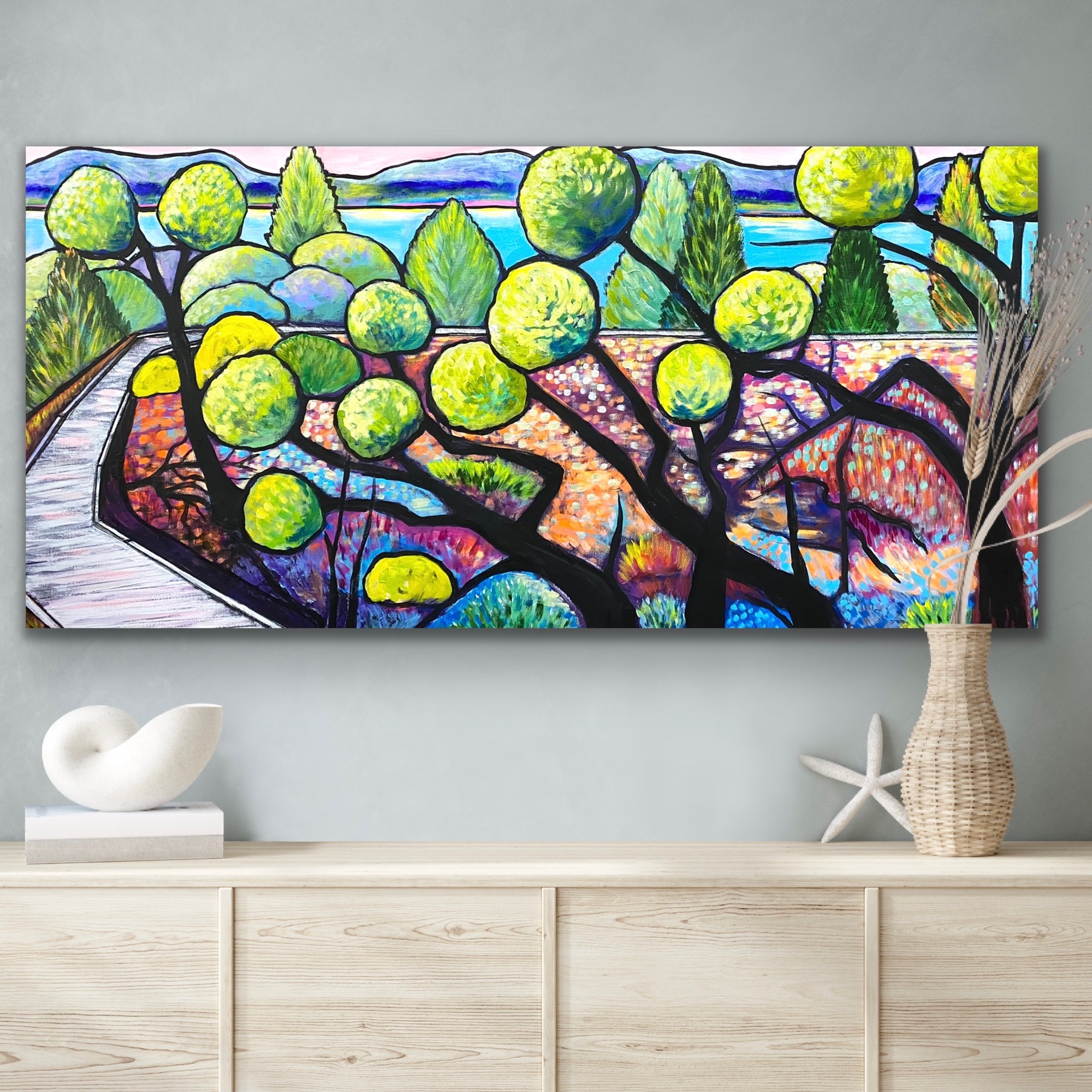 Another in my popular series of Mangrove Wetland paintings, full of brush strokes and a colourful play on light and shade, very much in my own unique style.