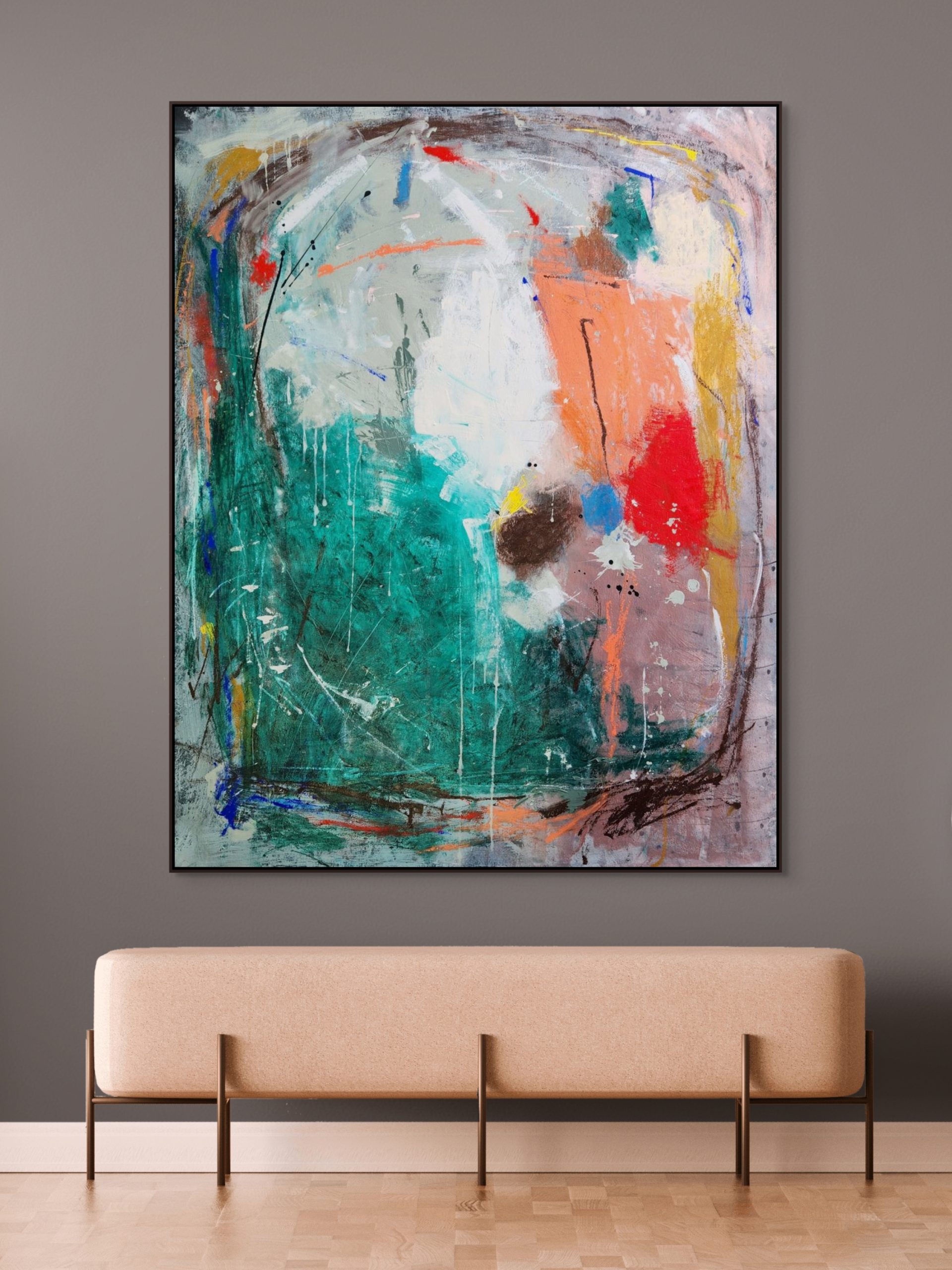REQUIRES STRETCHING. Stretching is available for an additional cost. Artwork size once stretched- 152cm x 118cm