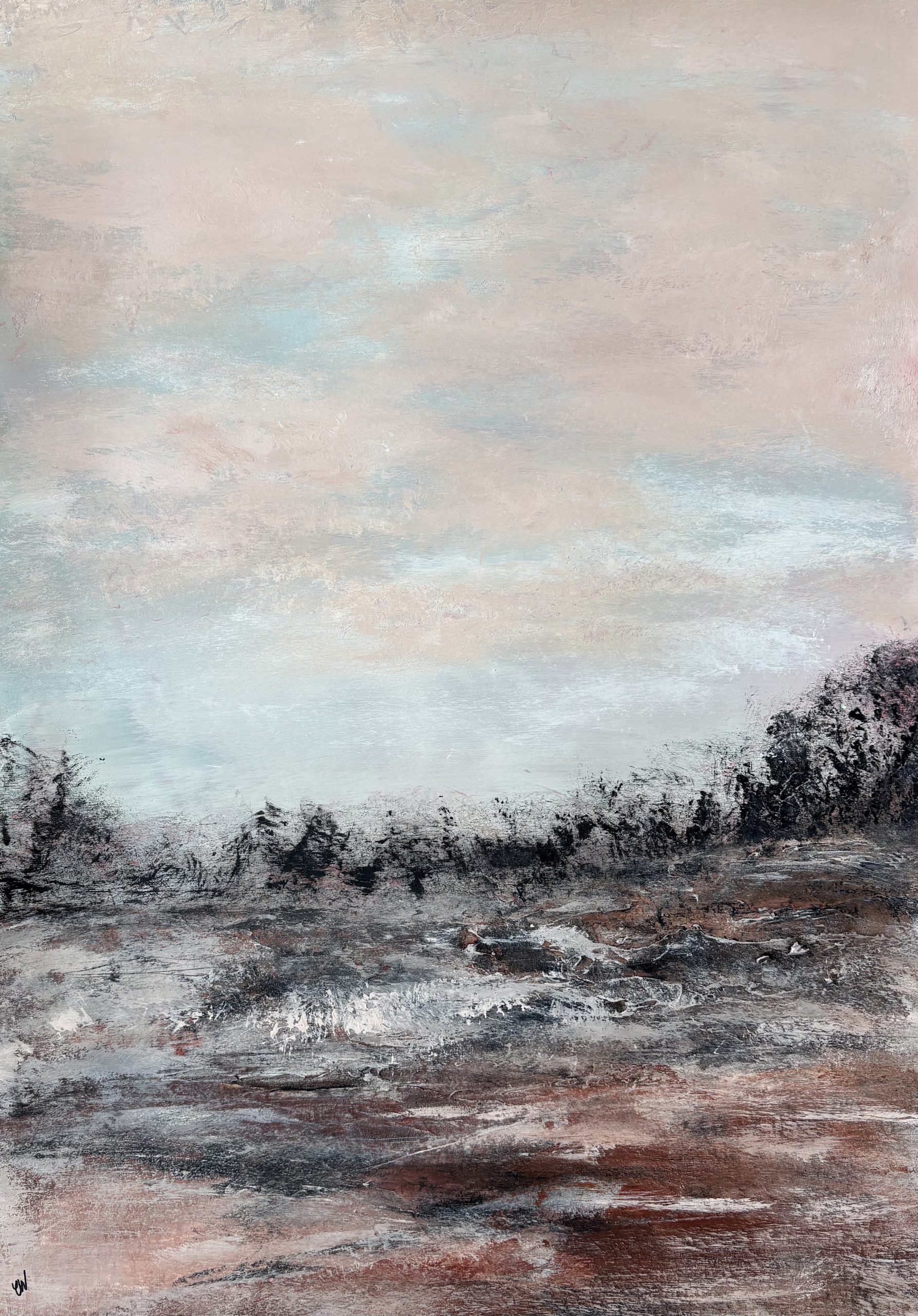 A beautifully textured abstract landscape. 59.4 x 42 cm (A2 size). Acrylic on paper. Frame not included. Requires framing.