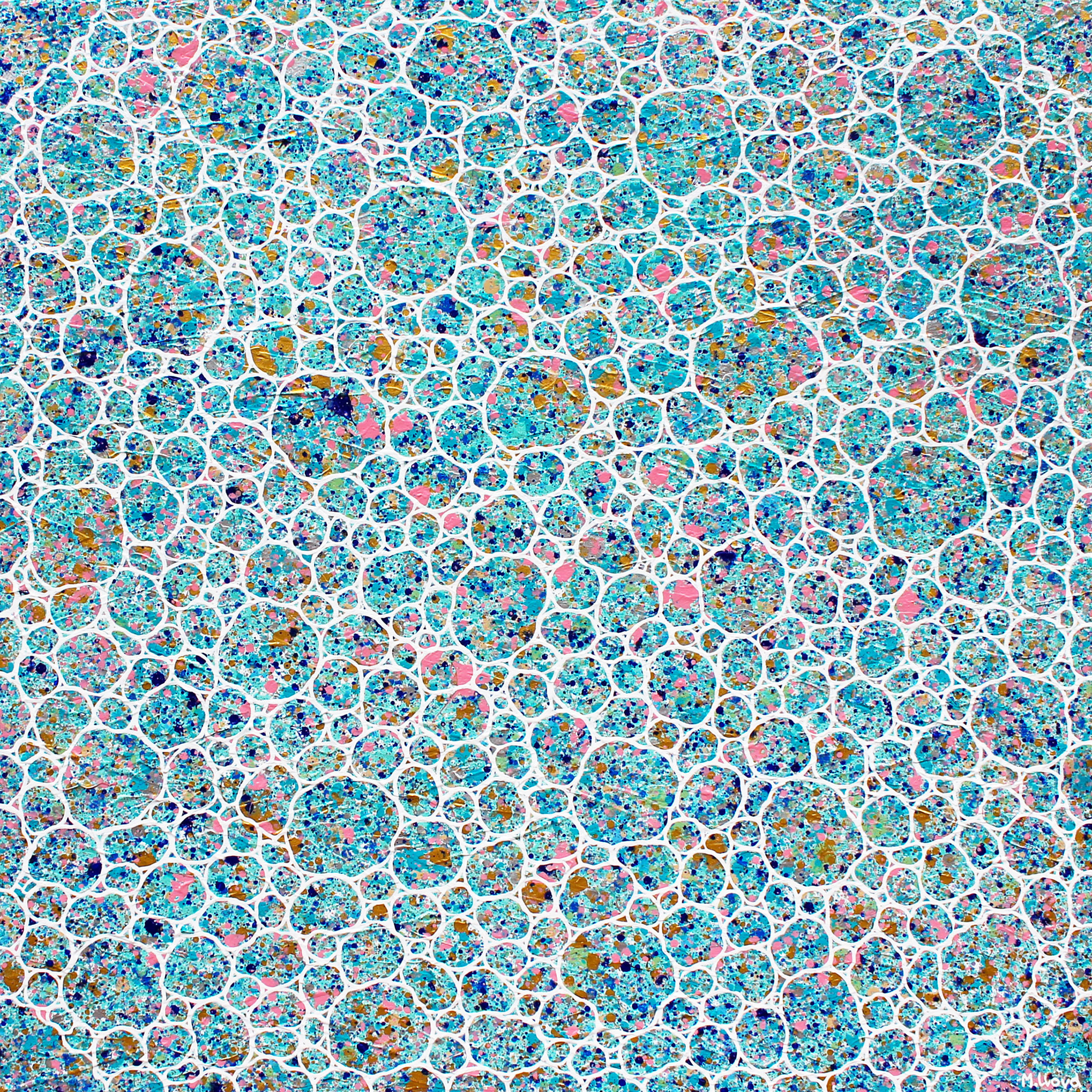 Abstract – Coastal Pastels Textured Pebbles by Miranda Lloyd – This painting was inspired by wanting to paint something tranquil and calm as now being in a world pandemic we are surrounded by so much negative news and worry. I also wanted to paint something that was therapeutic for myself as a lot of my usual art subjects require a bit of math and measurement. This was a free flowing painting, finding my zen. It reflects pebbles in water which again is very calm and soothing. This versions background has a light texture. A mix of blues, deep blue, turquoise, greeny blues, pink, green, beige, white, gold, silver. The close up images show the colours well.