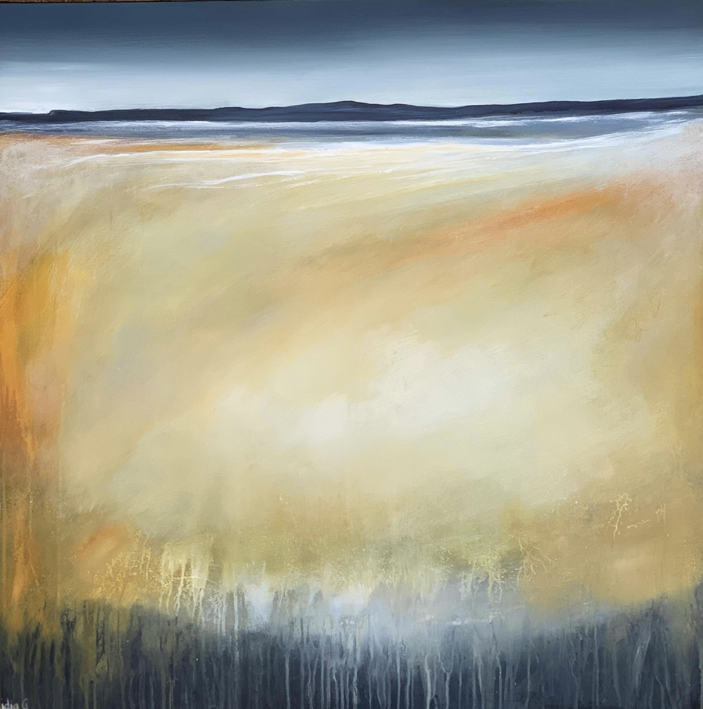 Inspired by the incredible diversity of the Australian landscape from its rugged coastlines, snow-capped mountains and the idiosyncratic landscape of the sandy desert with its sun baked monoliths and rainforests. The edges of the painting are painted in Lamp black and comes with professional wire hanger and a Certificate of Authenticity.