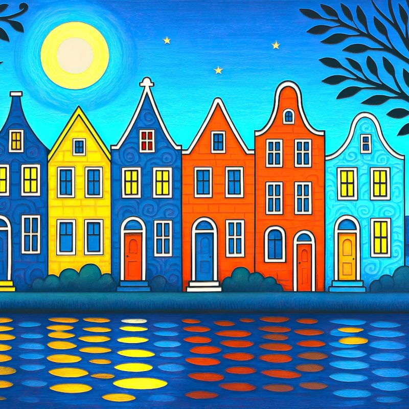 Using colour palette of blue greys, pale lavender and burnt umber. The painting is encompassed by a crisp white painted border, which serves to enhance the impact of the central composition. The contrast between the colourful abstract forms and the clean white background further emphasises the artist’s intention to convey a sense of energy and fluidity.