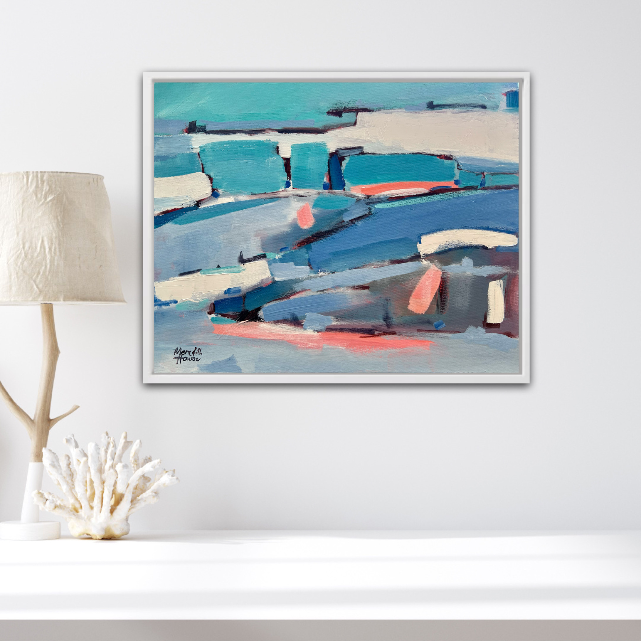 Framed in a white floating frame. Ready for wall.