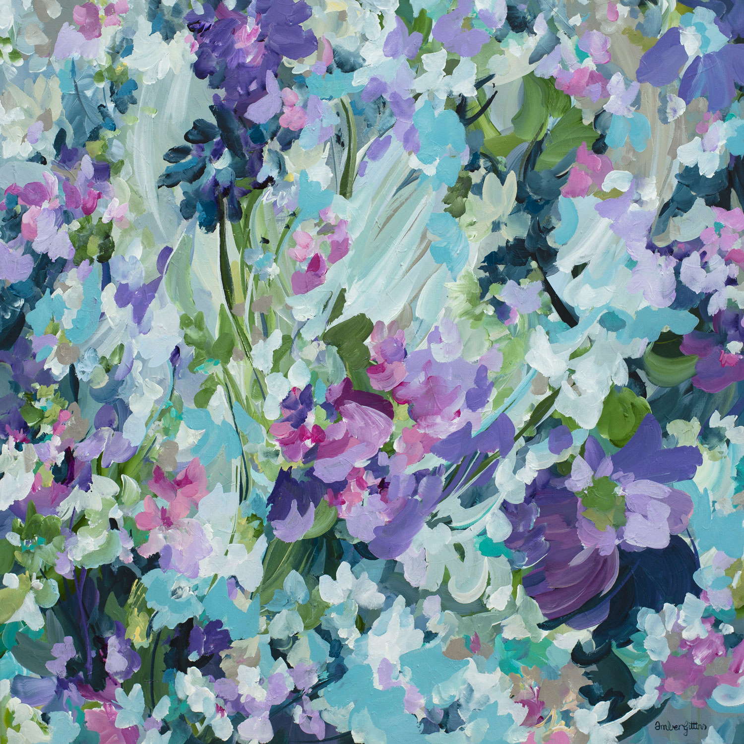 Abstract Botanical artist Amber Gittins has a love for colour and movement in her paintings. She uses acrylics as she loves the fast drying time of acrylic paints, which helps in the creation of the natural flowing movement that give her that signature style. Her colour palettes are ever changing with each piece, which can also coincide with her current mood and also varies depending on the time of year and season she is in. Nature is her constant inspiration and she loves to explore outside and take long walks in nature regularly. Amber’s artworks invoke joy and calmness within the viewer and have created a modern unique addition into collectors homes worldwide.