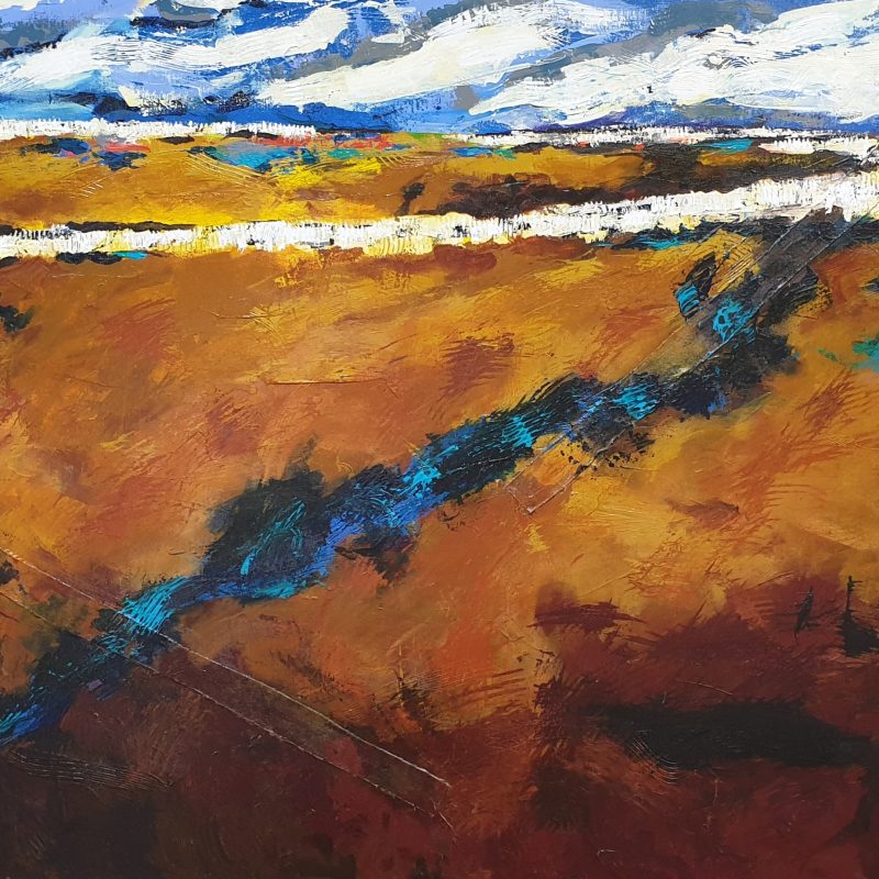 This artwork has been finished with layers of professional grade archival varnish for extra protection, colour enhancement and a beautiful smooth finish. The metallic paint used reflects the shifting light beautifully really bringing the painting to life.