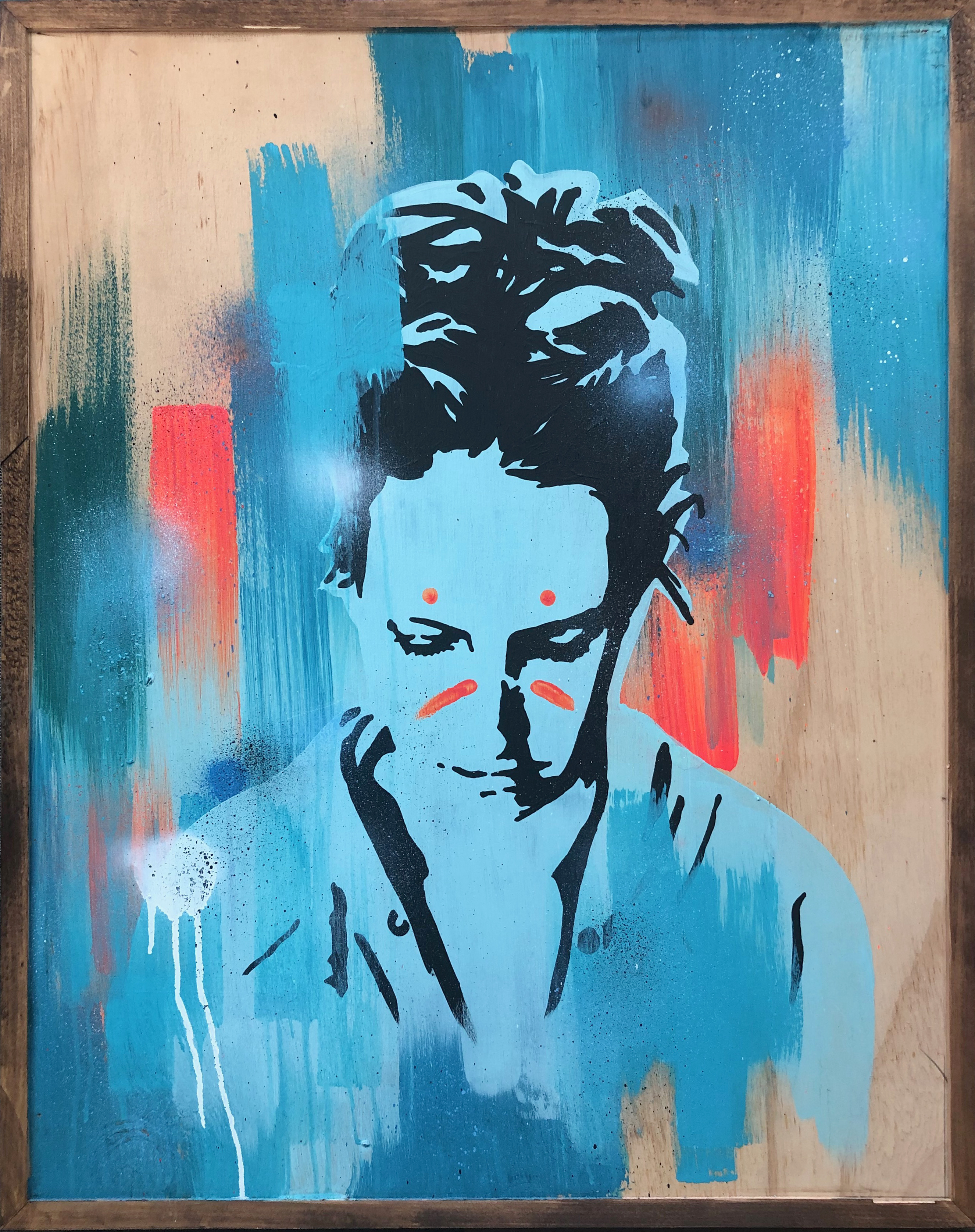 Signed and dated on the back of the work. Ready to hang with screws and hanging wire on the back.
