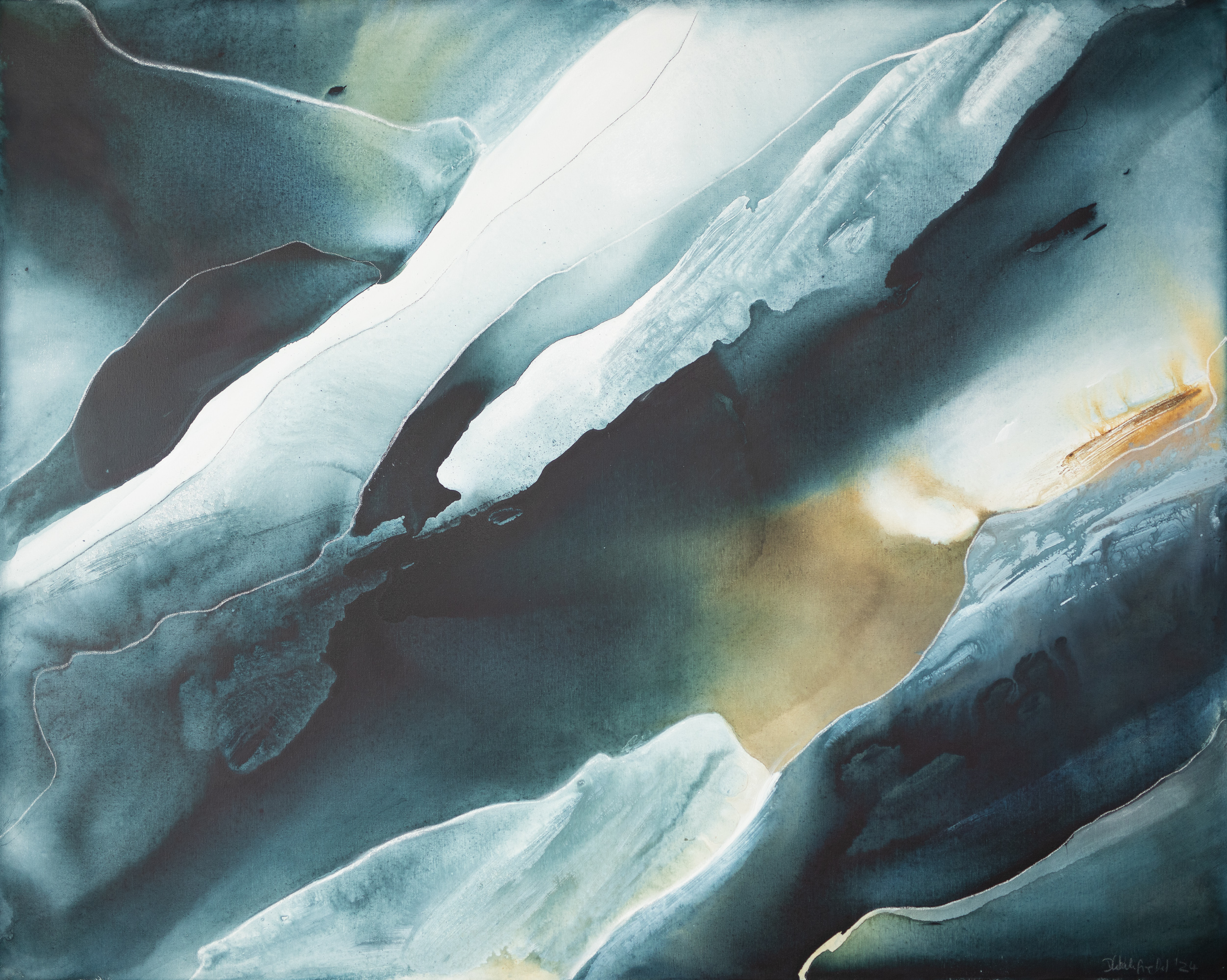 After Midnight by Dinah Wakefield is inspired by the light, the colours and the natural beauty of the Noosa region of Australia. “What I love most about Noosa is the interplay of light. From the oceans to the clouds, to the river estuaries and the hinterland, this canvas unfolds before me every day and finds expression in my paintings”.