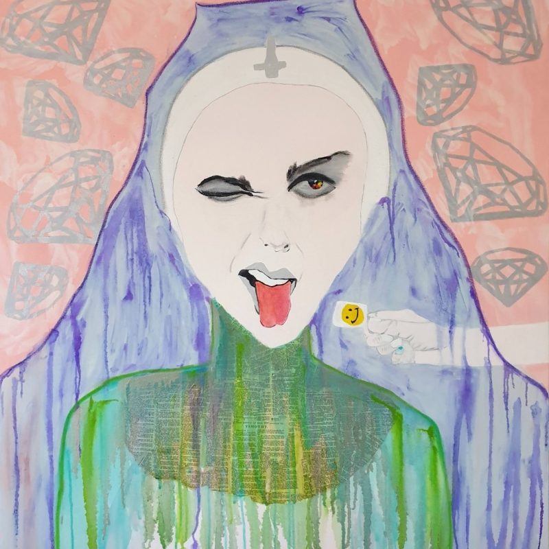 Mixed media and resin on canvas