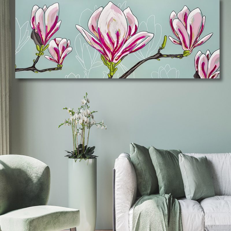 Beautiful colours of teal blue, turqoise and aqua represent the ocean which contrasts beautifully against the white of the crashing waves.