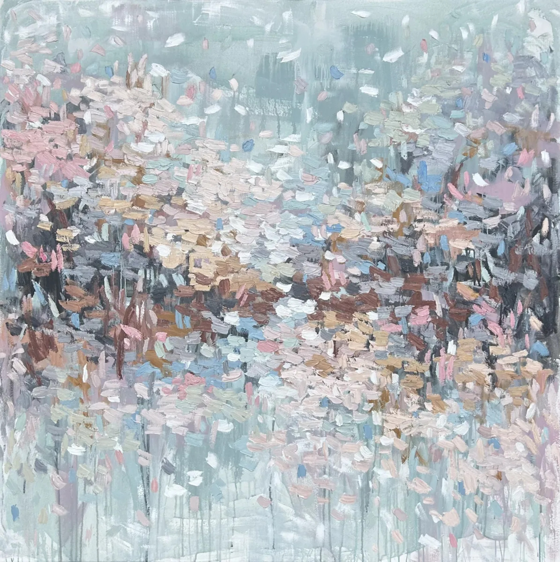 The interplay of colors evokes a sense of quiet introspection, like the calm after a storm or the first light of dawn.