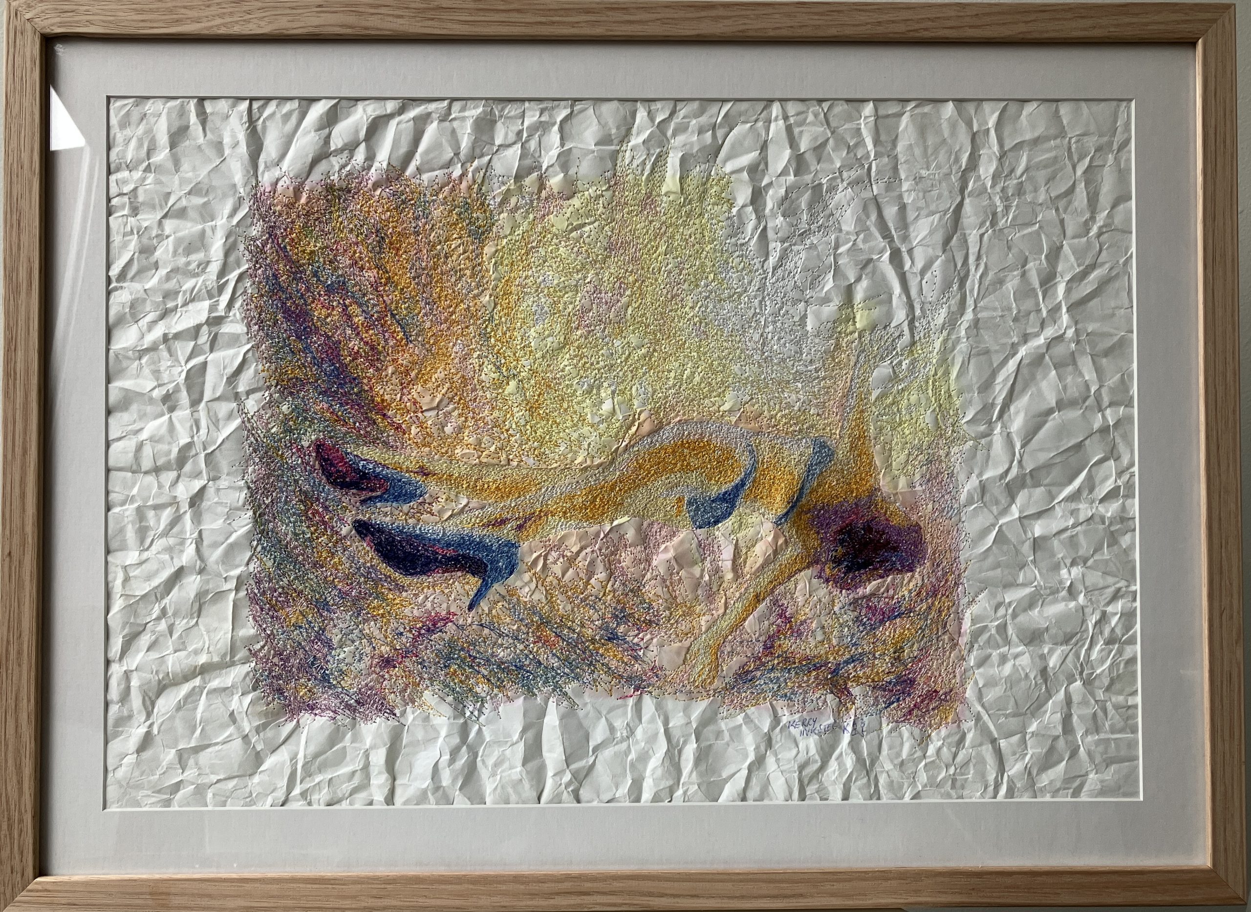 This artwork is made of specialist embroidery thread sewn onto paper and backed with muslin. Signed on the front.