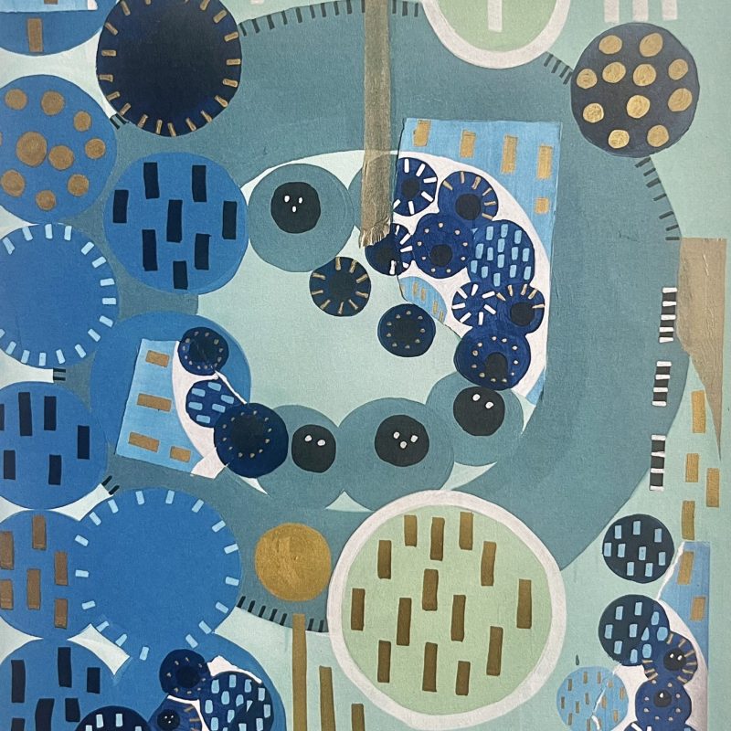 I have always loved glistening embroidery thread and all of the beautiful colours available. My mother and grandmother were both amazing seamstresses and I seem to recall that I spent my entire childhood growing up listening to the sewing machine as my mother created beautiful garments. During my training as a contemporary artist I studied units of textiles at Uni SA and Curtin University and enjoyed playing with fabric and thread, and I wanted to explore my image through the textile medium. I have used my specialist quilting machine which enables you to free-hand draw with thread. I have applied pop art principles into the artwork with sections of colour to create form. When looking closely at these pieces I am transfixed by the capture of light on the thread, the different colours, and the delicate detail. This piece would look amazing framed and in an intimate setting. The size of the “sewn” artwork is 37cm W and 28cm H – leaving a border of paper, a mat board, and 2cm thick frame. This particular piece could be hung in a portrait or landscape format. If you love line making with more unusual yet beautiful media this artwork is for you!