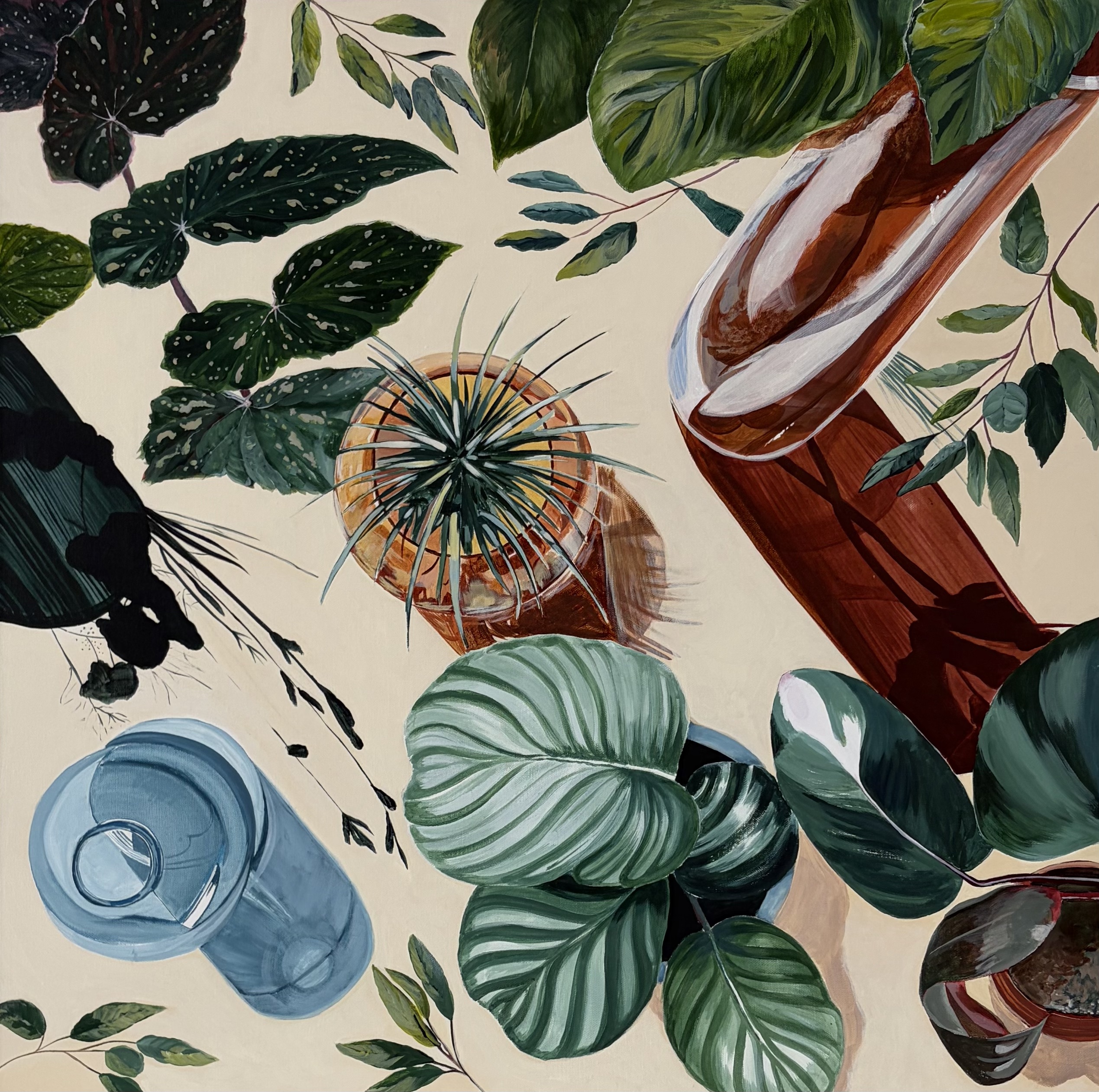 An exploration of colour, shadow and light, this piece was created to share the beauty of the everyday. A top down view of a lovely table top. Enjoying time with friends and the simple things in life.