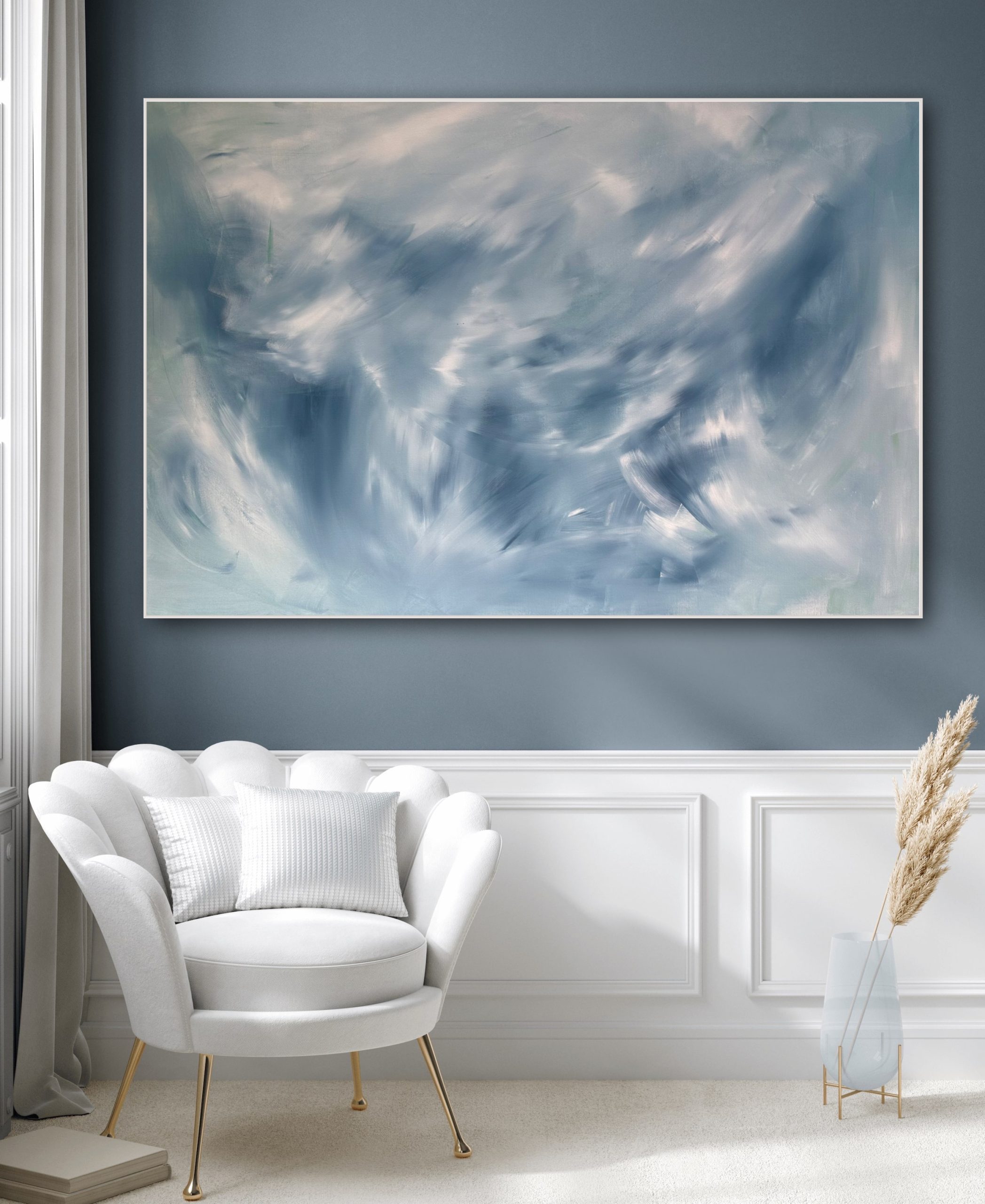 This expressive extra large abstract has large brushstrokes to create movement and flow. I hope this painting serves as a reminder of when you have decided to go against the tide, and not follow with what everyone else does or chooses.