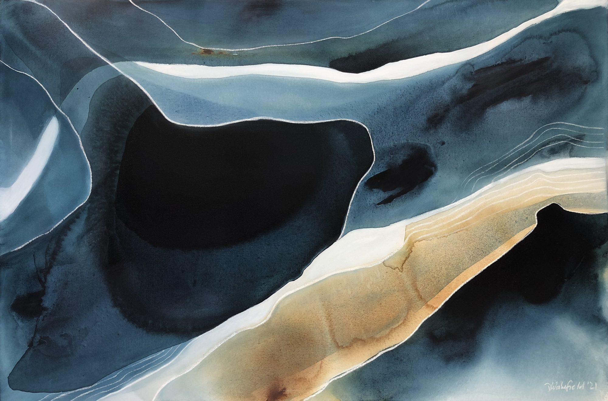 Airlie by Dinah Wakefield is inspired by the light, the colours and the natural beauty of the Noosa region of Australia. “What I love most about Noosa is the interplay of light. From the oceans to the clouds, to the river estuaries and the hinterland, this canvas unfolds before me every day and finds expression in my paintings”.