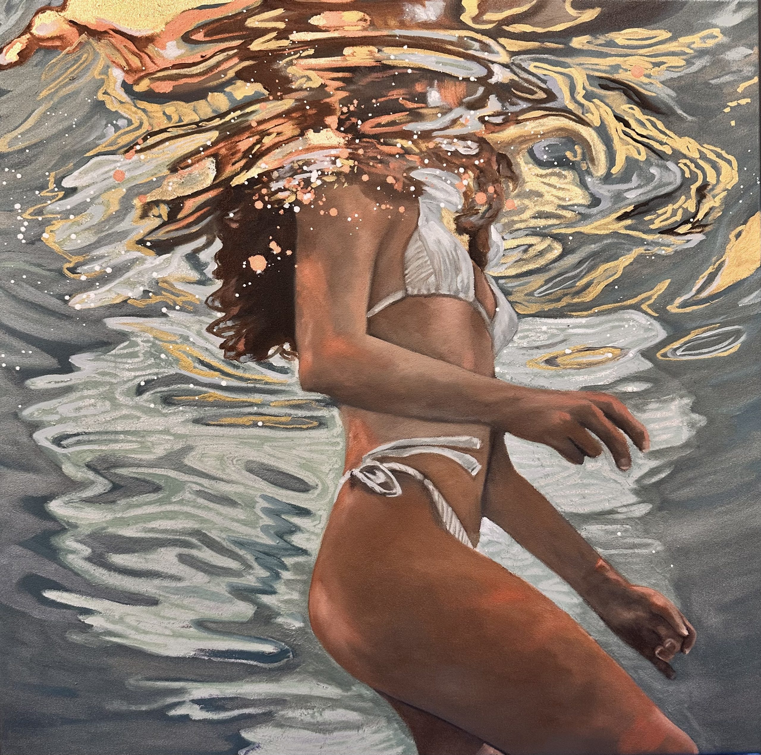 While still exploring the interaction and connection between water, light and form, this series also analyses the sense of disquiet when swimming in deep ocean water. At the same time, the main focus is the quest for refuge, quietness and escapism. These paintings juxtapose the lone swimmer and a few minutes of introspection when alone in deep water against the fear of the unknown. The constant struggle between hyper-realism and having a painterly quality to my work is a conflict I always try to balance; therefore, thick paint and evident brush strokes are present when viewed up close.