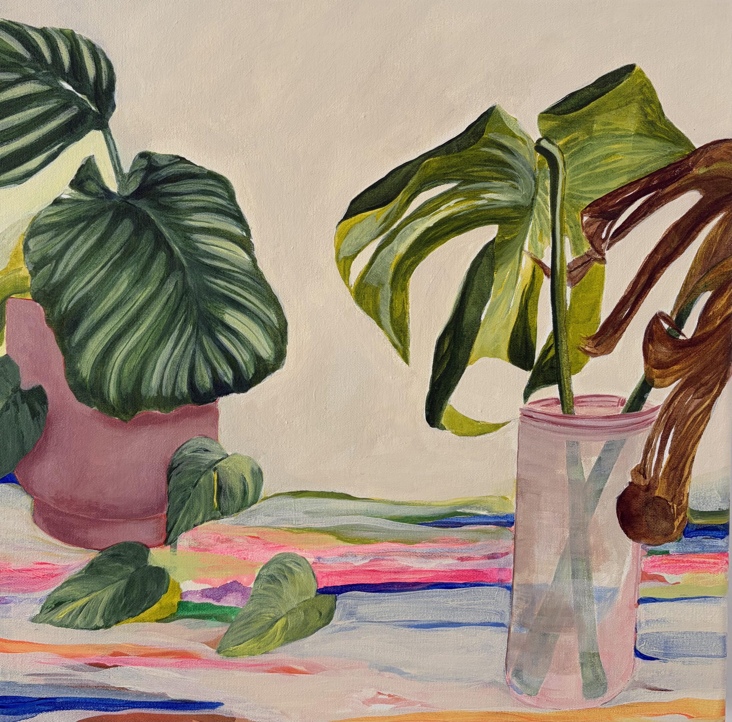 This lovely piece, All I need is an original still life painting, capturing my plants and favourite things, perfect for any room.