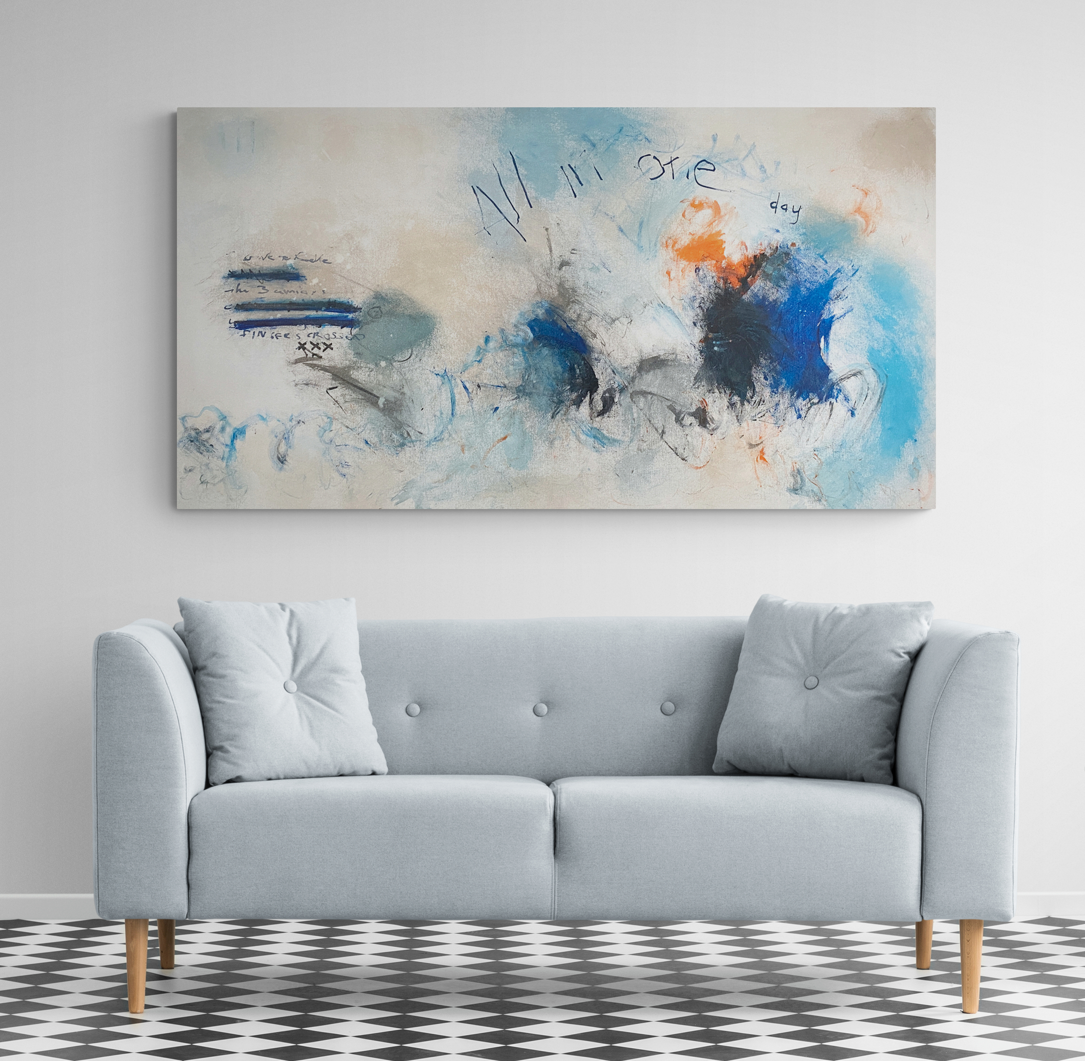 All In One Day is one such piece. It’s a playful and of the moment painting that serves as a reminder to enjoy as much good and important stuff in each and every day that you can.