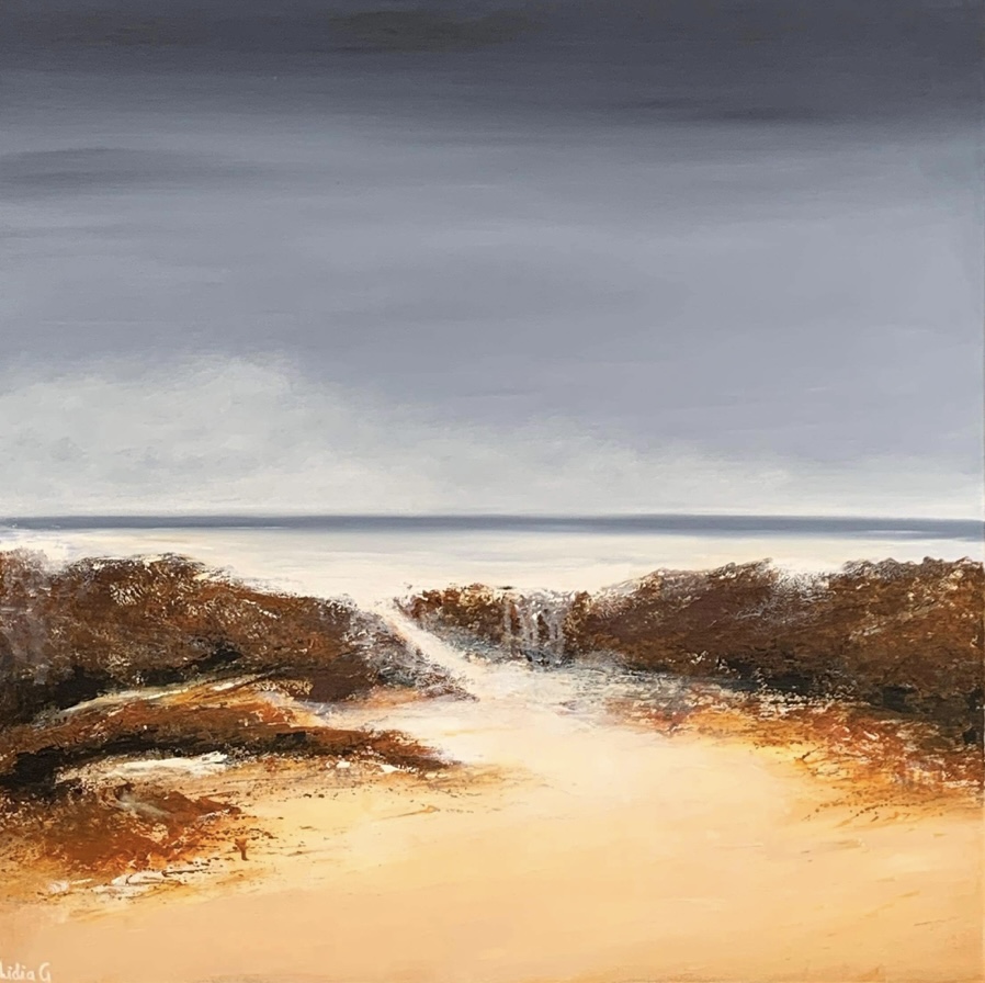Inspired by the incredible diversity of the Australian landscape from its rugged coastlines, snow-capped mountains and the idiosyncratic landscape of the sandy desert with its sun baked monoliths and rainforests. The edges of the painting are painted in Titanium white and comes with professional wire hanger and a Certificate of Authenticity.