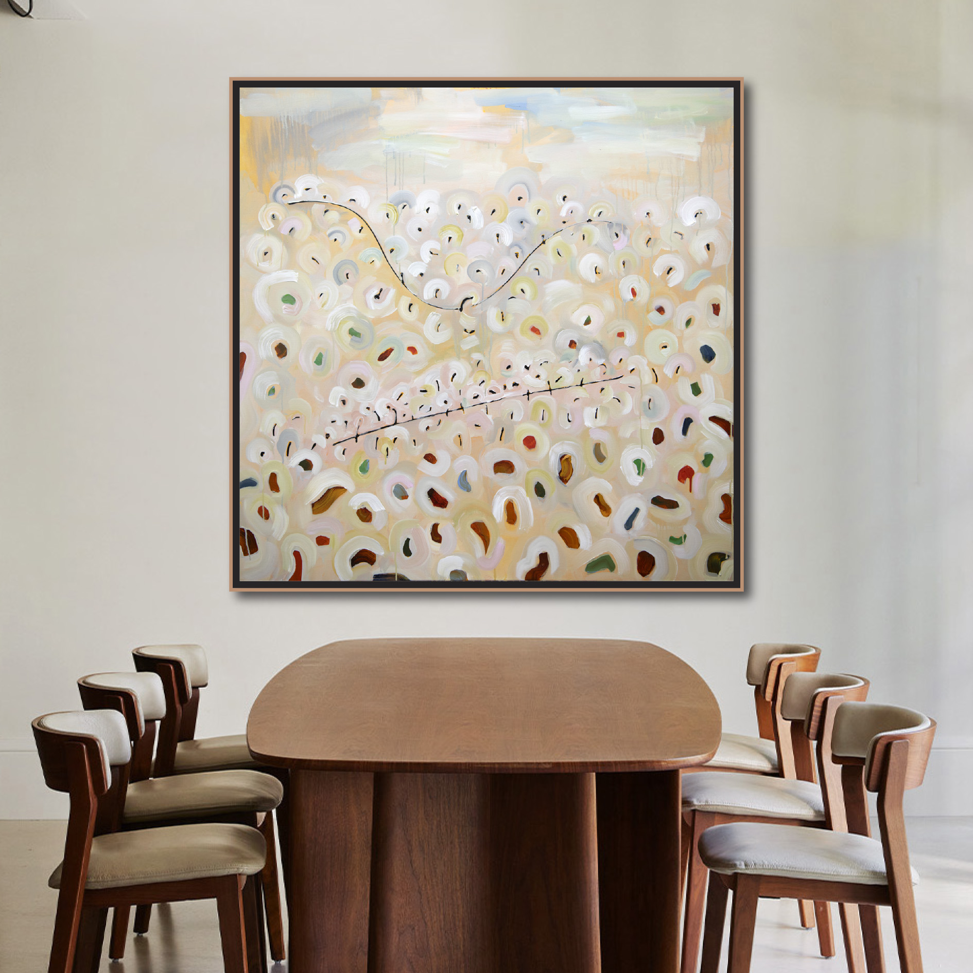 All the Light of the Day III by Michael Wolfe – 122W x 122H cm ready to hang and framed in a thin line Mountain Ash frame with a Danish Oil finish to suit your interior style.