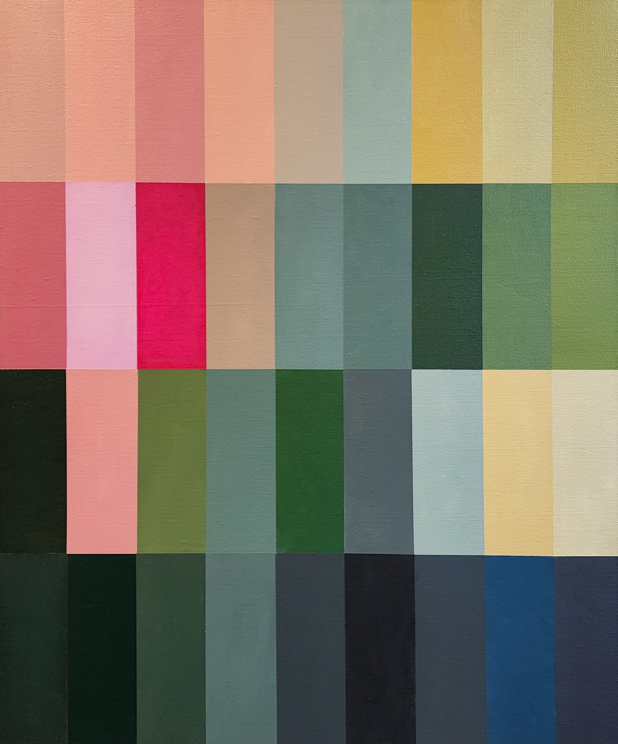 Indie’s geometric abstract pieces consist of the repetition of patterns that together form the idea of an image. Layered across the canvas, they become the building blocks of a memory, significant enough to have become inspiration for each piece.