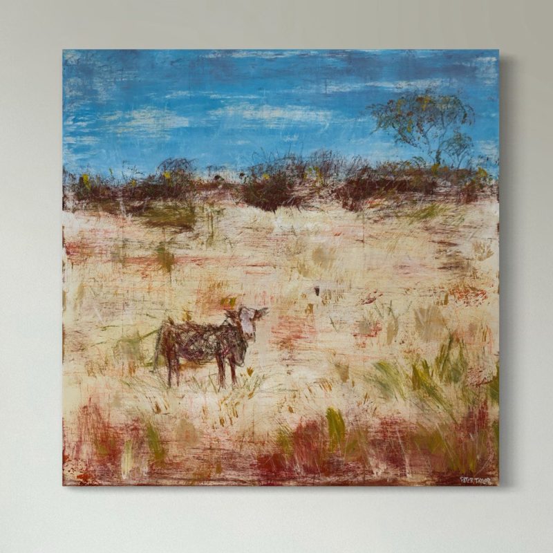 This artwork consists of two professional quality cotton canvases with sides painted in a light soft green colour and it is varnished for protection. Signature is on the back and front and also includes a certificate of authenticity.