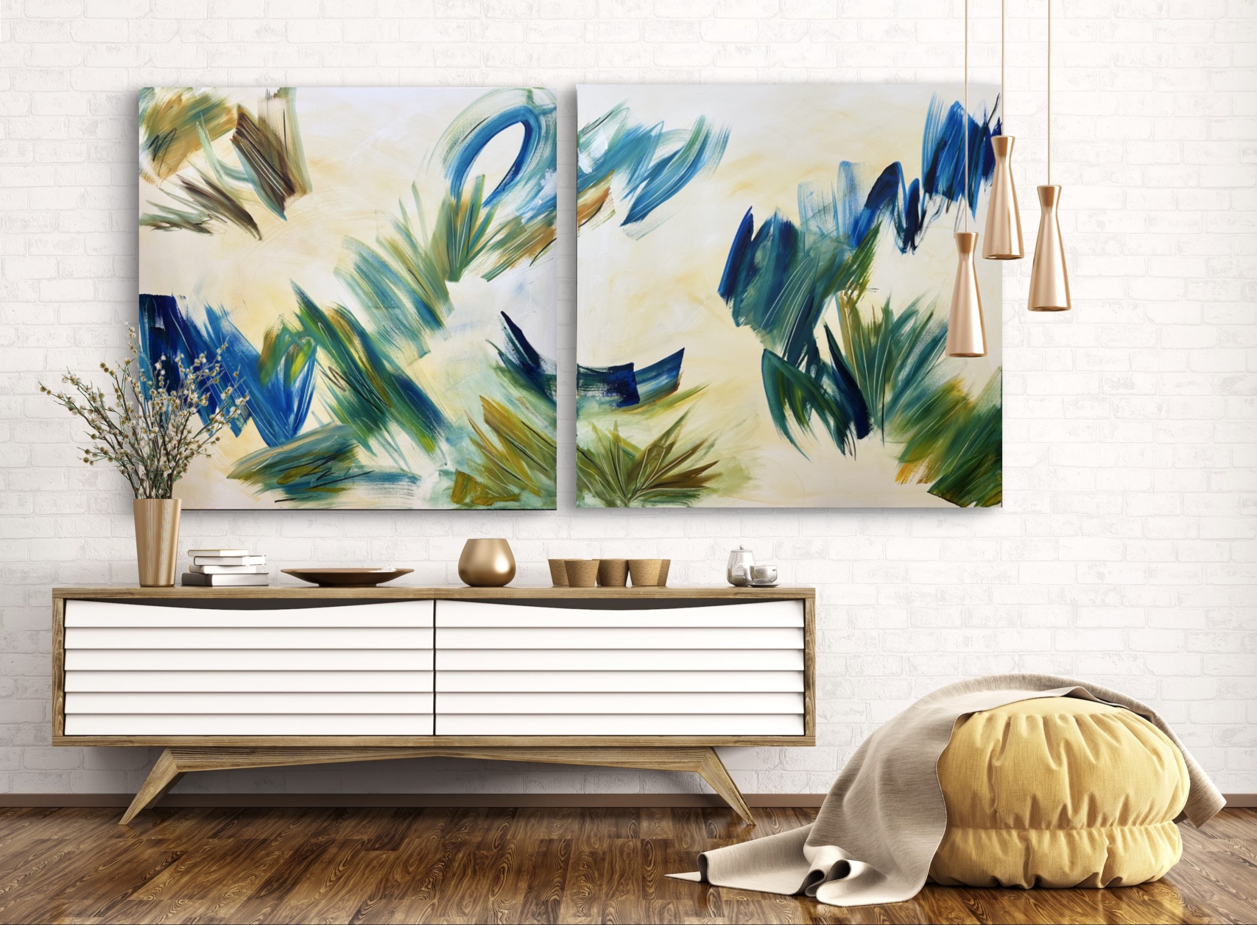 Walking on sunshine – Framed abstract diptych