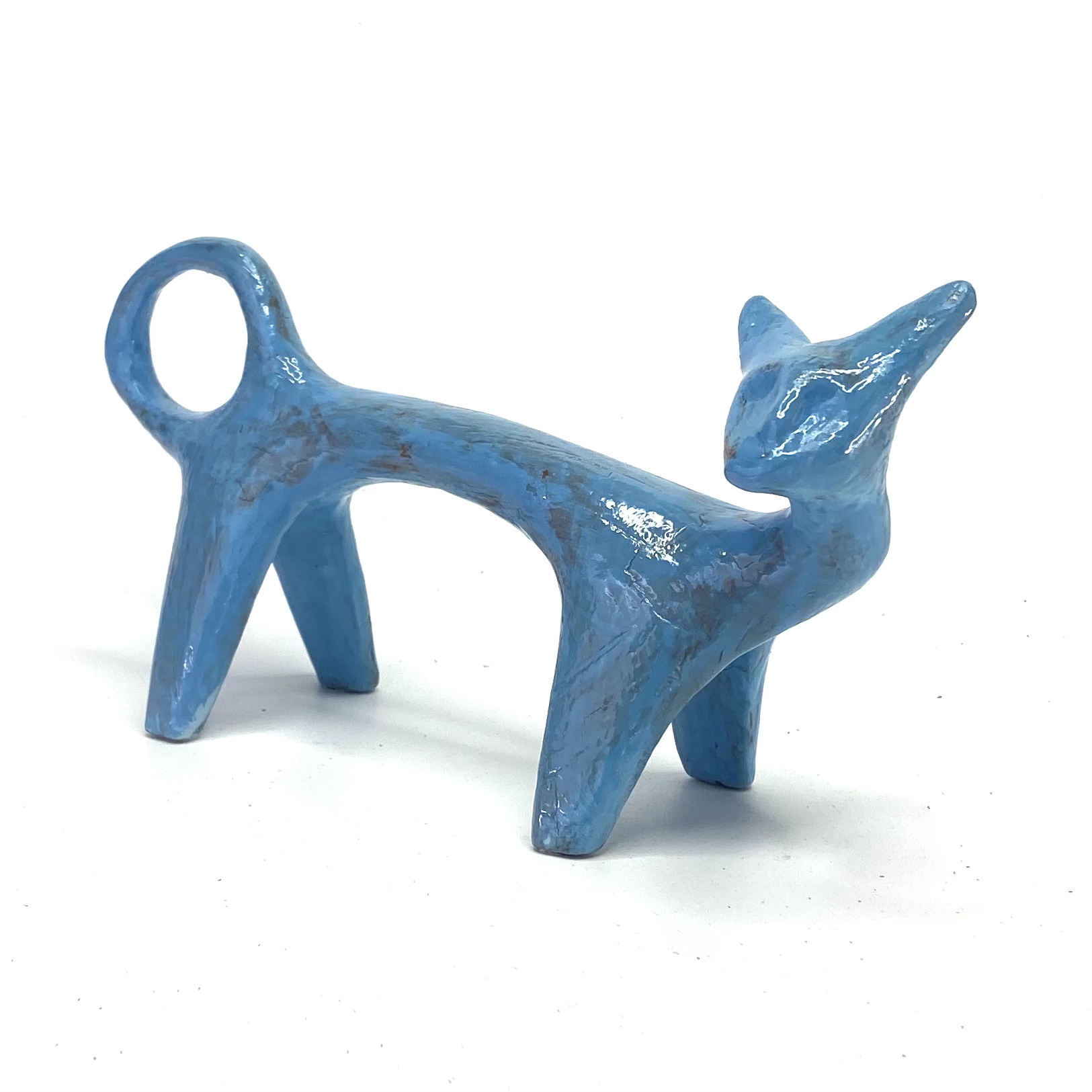 Alley Cat by stefan Mager – Elegant azure blue cat glazed and finished with various techniques.