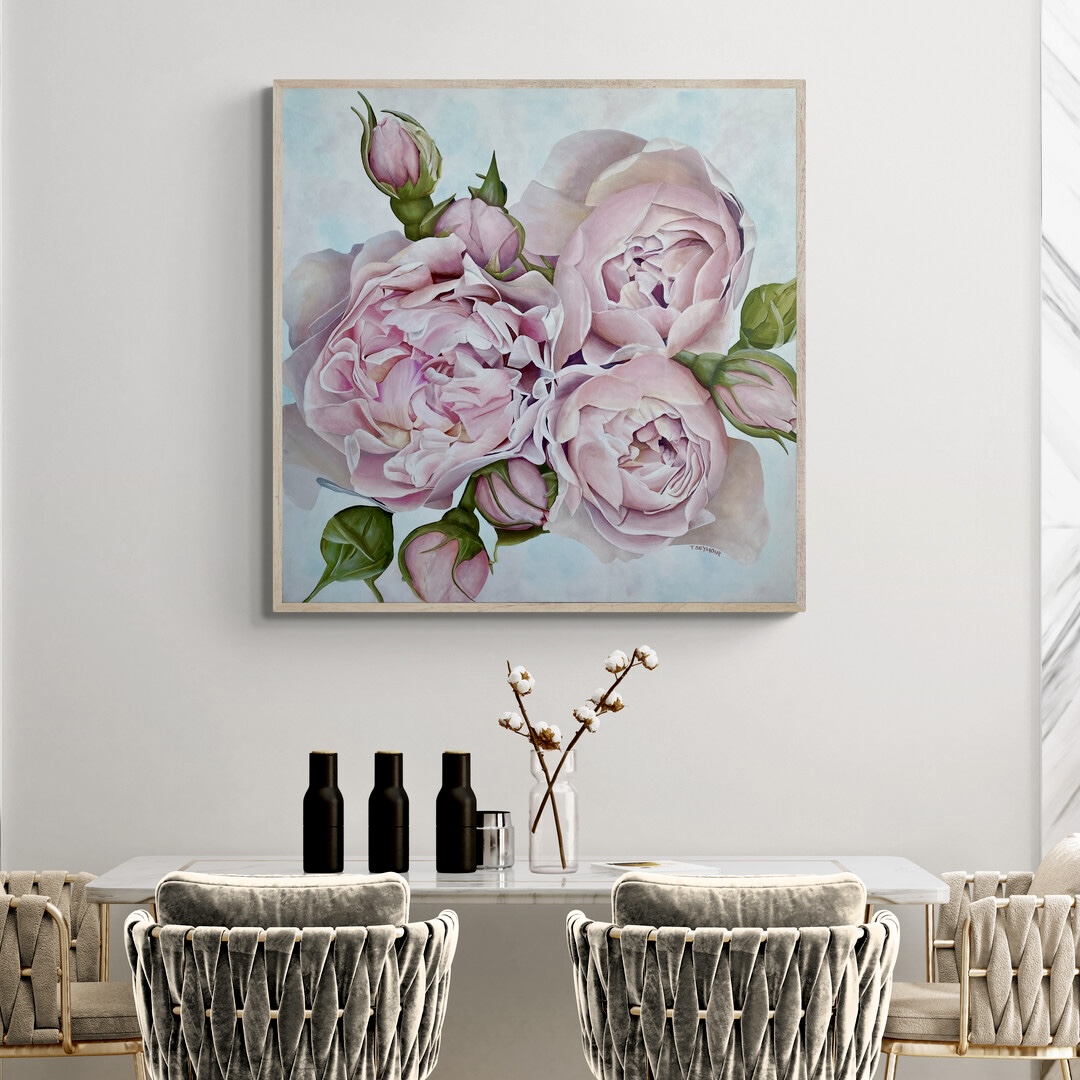 Just love this creation with its soft muted pink and blue hues enveloping dreamy pinks, whites with splashes of green.